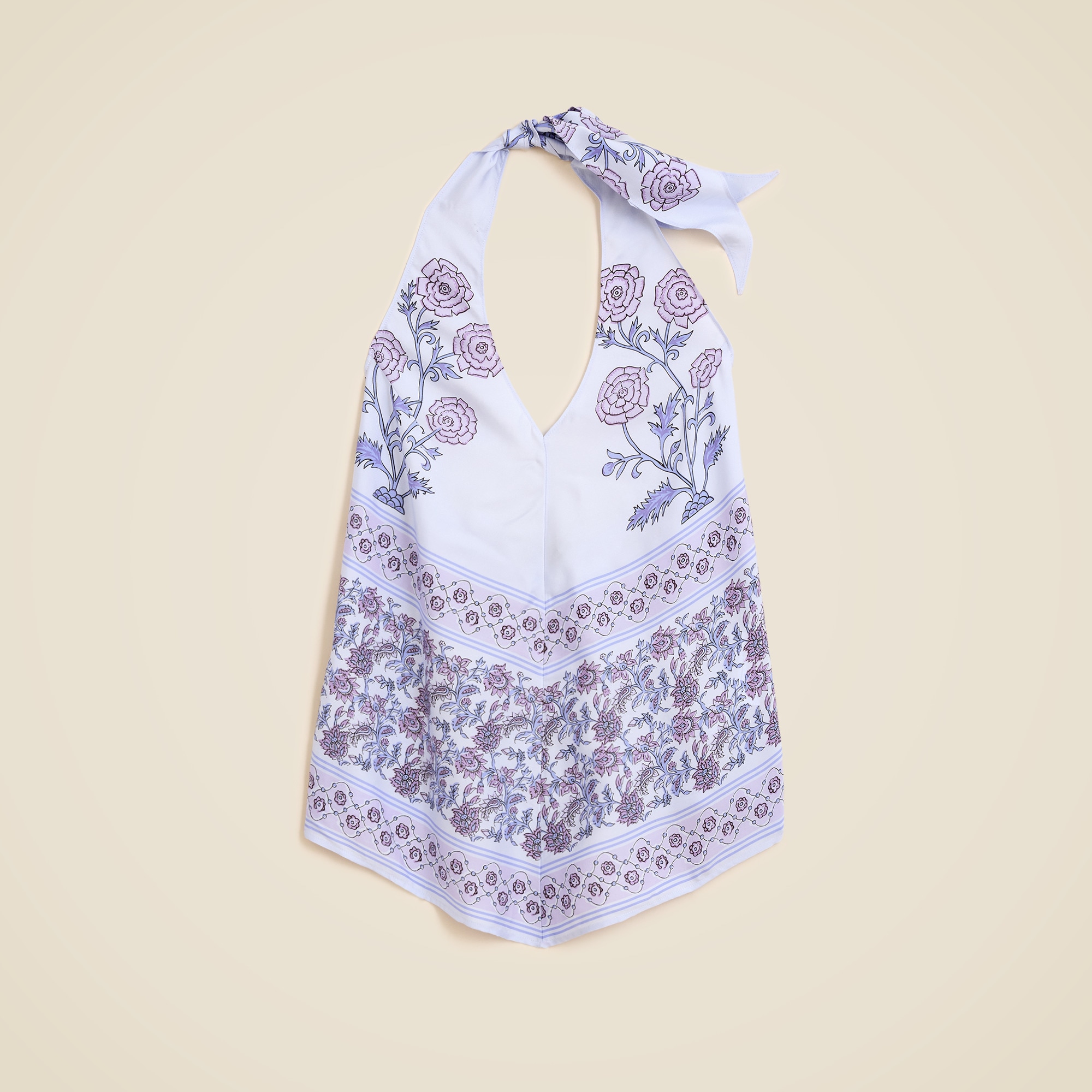 Open-back Halter Top In Dusty Periwinkle Block Print For Women