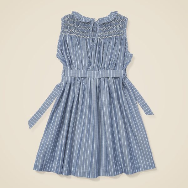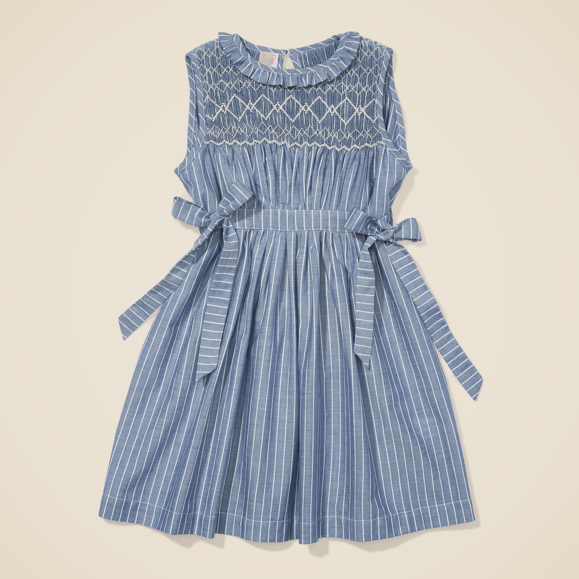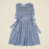 San Francisco-based brand Oso u0026amp; Me specializes in practical children’s clothing, working under the philosophy that every piece should be easily washed, easily worn and easily played in. With exclusive prints inspired by the whimsical, colorful creations of artist Happy Menocal, Oso u0026amp; Me breathes new life into sensible, wearable clothes, making getting dressed a pleasure for both parent and child. This fun party dress has all the bells and whistles. Lovingly hand-smocked on lightweight clipped chambray, with a matching hand-embroidered neck and chest. This dress ties at either side of the waist and comes with matching bloomers. To top it all off, it is preshrunk and fully machine washable for easy cleanup.