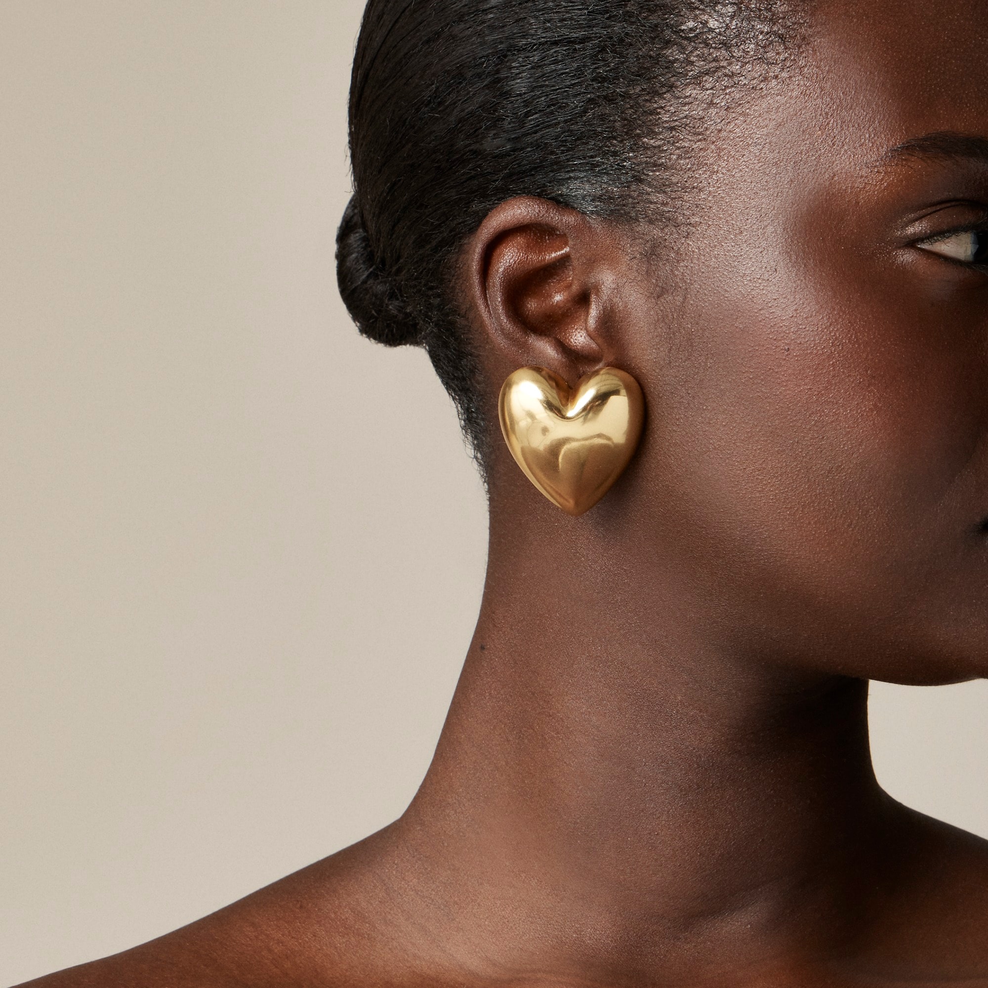 New earrings to absolutely love. . .This heart-shaped style makes the perfect statement (for yourself or as a gift). Feel-good fact: It was made using eco-friendly recycled-brass casting. Want to keep your jewelry looking like new? We recommend removing it before showering or exercise and putting it on after applying hair products or perfume. To clean your pieces, polish them with a soft, dry clothu0026mdash;and when not wearing, store them in a pouch or jewelry case.