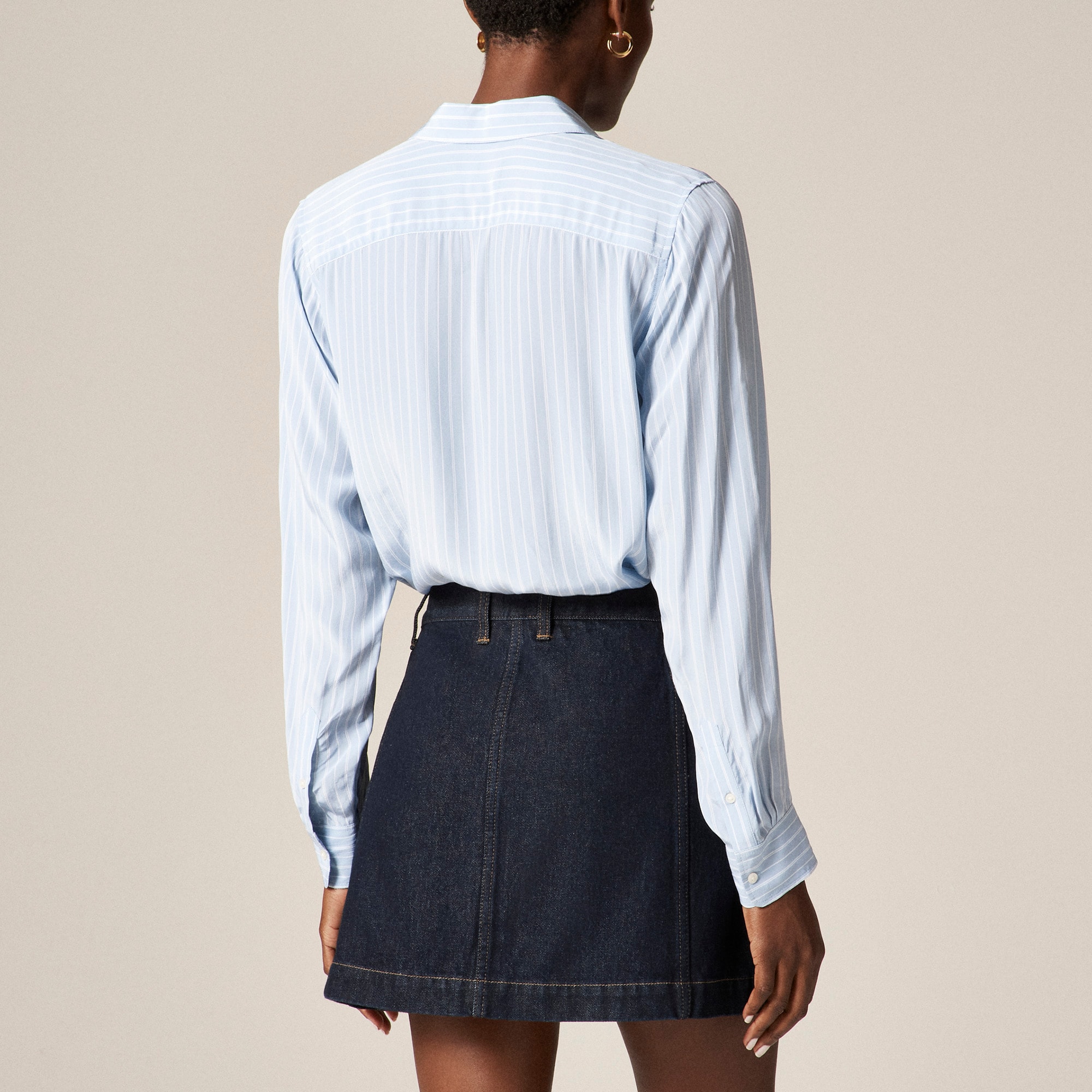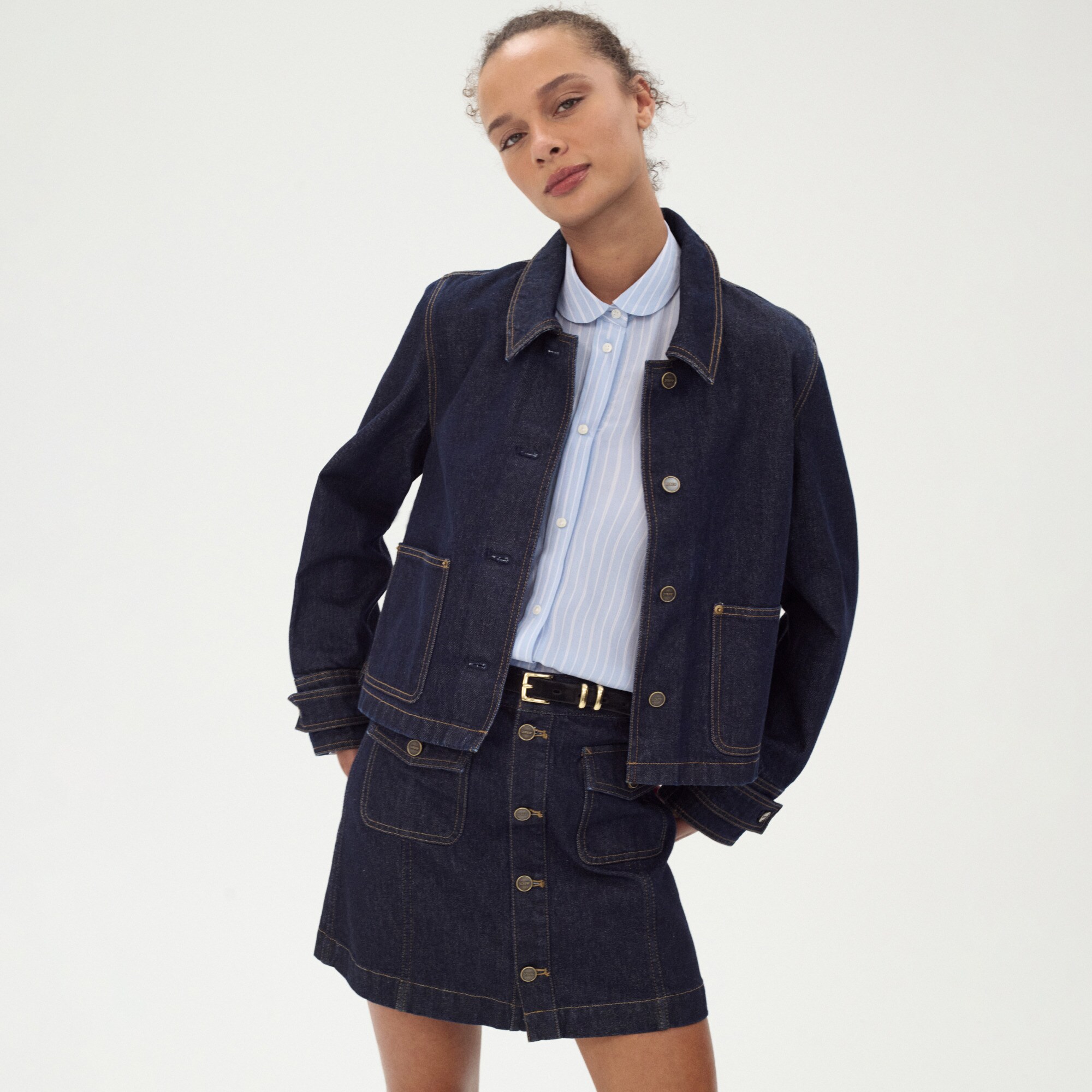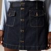 Because every closet needs a classic denim skirt. . .This streamlined mini silhouette comes with heritage-inspired patch pockets and a clean, dark wash that’s as timeless as ever.