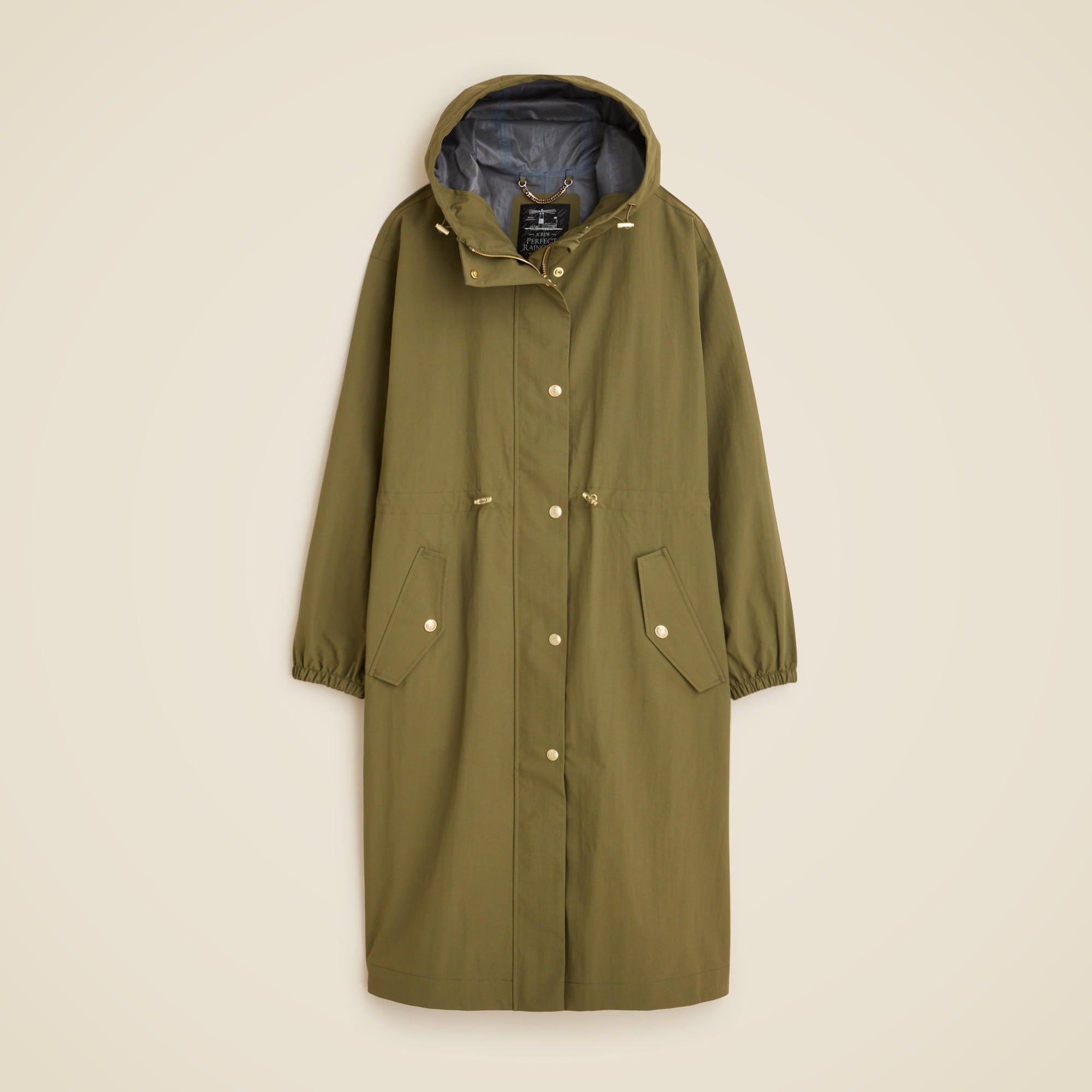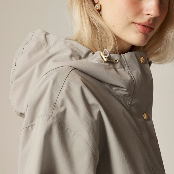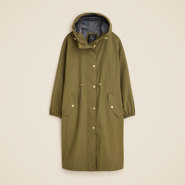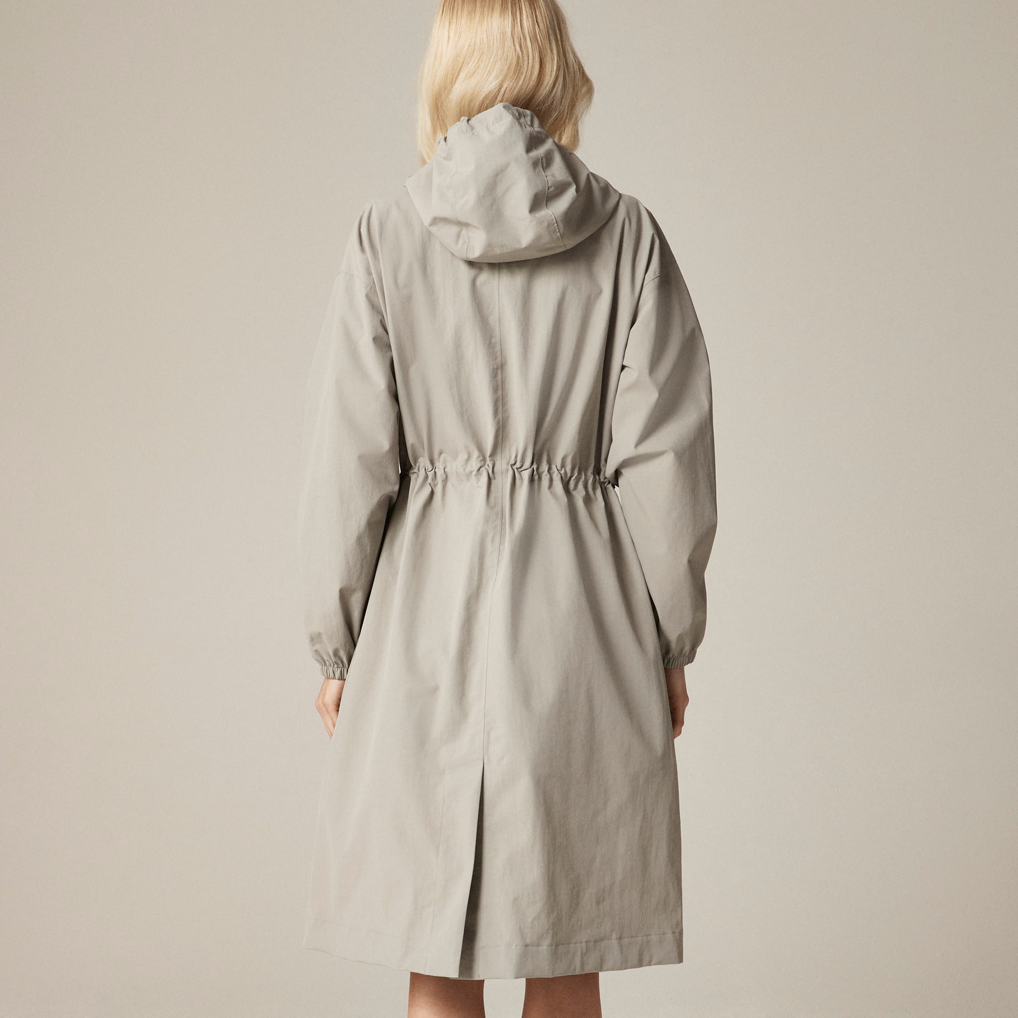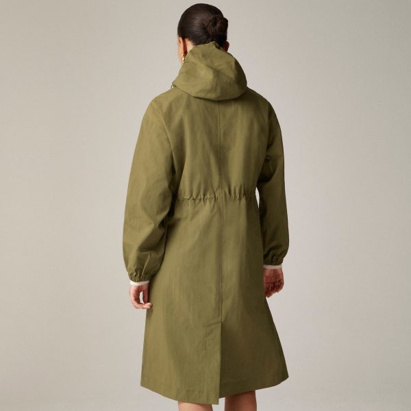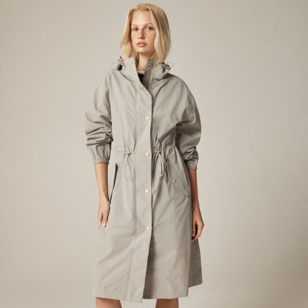 The latest update on our best-selling layer. . .We reinvented our favorite silhouette with water-resistant fabric, a longer, more modern length and a drawcord at the waist for added shape, so you’ll be looking forward to every rainy day. Plus, it comes with a hood (of course) that’s as polished as it is practical.