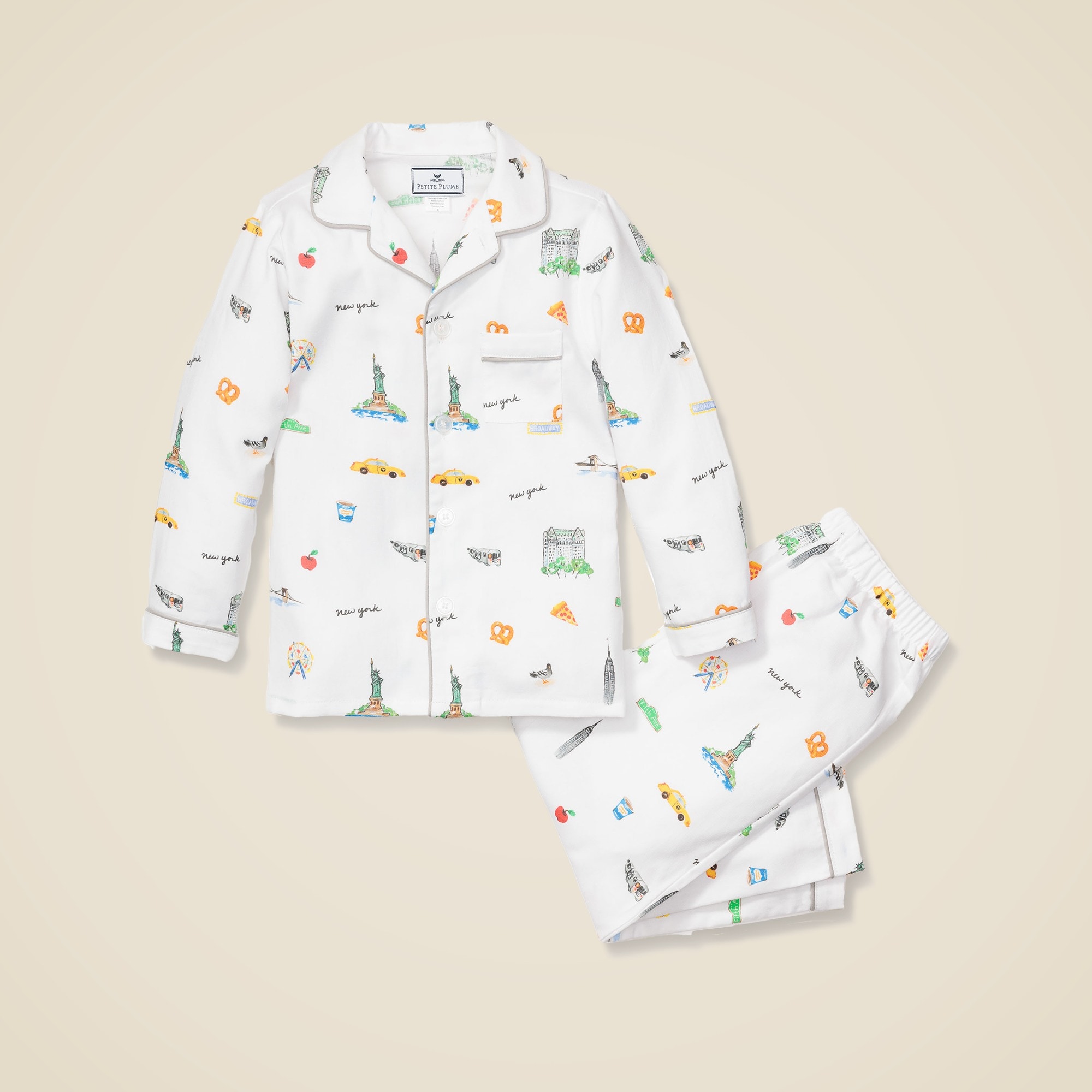 Petite Plume was inspired by the desire to create sophisticated and comfortable sleepwear in the most exquisite fabrics available. With Petite Plume, your family will be tucked in love and off to dreamland. Bonne nuit. This classic pajama set is accented with contrast piping and finished with pearl buttons. The sleepwear is made from the finest-quality cotton and blended with just enough inherently flame-retardant fiber to allow it to pass strict CPSC laws without using harmful chemicals. The fabric is brushed for added softness, making the sleepwear feel absolutely luxurious, getting cozier after each wash.