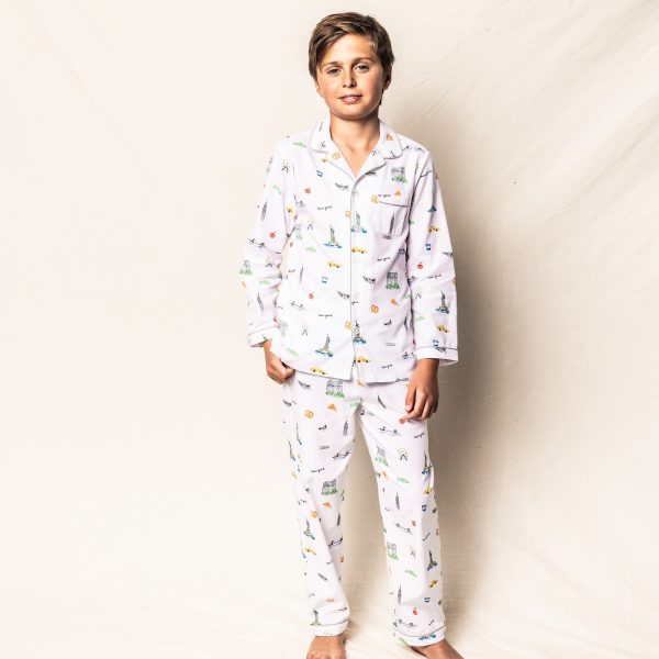 Petite Plume was inspired by the desire to create sophisticated and comfortable sleepwear in the most exquisite fabrics available. With Petite Plume, your family will be tucked in love and off to dreamland. Bonne nuit. This classic pajama set is accented with contrast piping and finished with pearl buttons. The sleepwear is made from the finest-quality cotton and blended with just enough inherently flame-retardant fiber to allow it to pass strict CPSC laws without using harmful chemicals. The fabric is brushed for added softness, making the sleepwear feel absolutely luxurious, getting cozier after each wash.