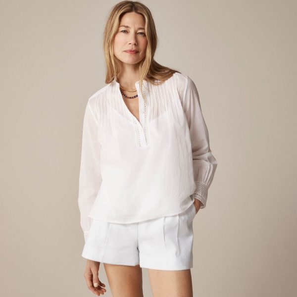 Intricately detailed and effortlessly polished. Trimmed with lace and elevated with pintucks along the top, this airy style is crafted from subtly sheer 100 percent cotton voile and comes with a removable camisole underneath for added coverage.