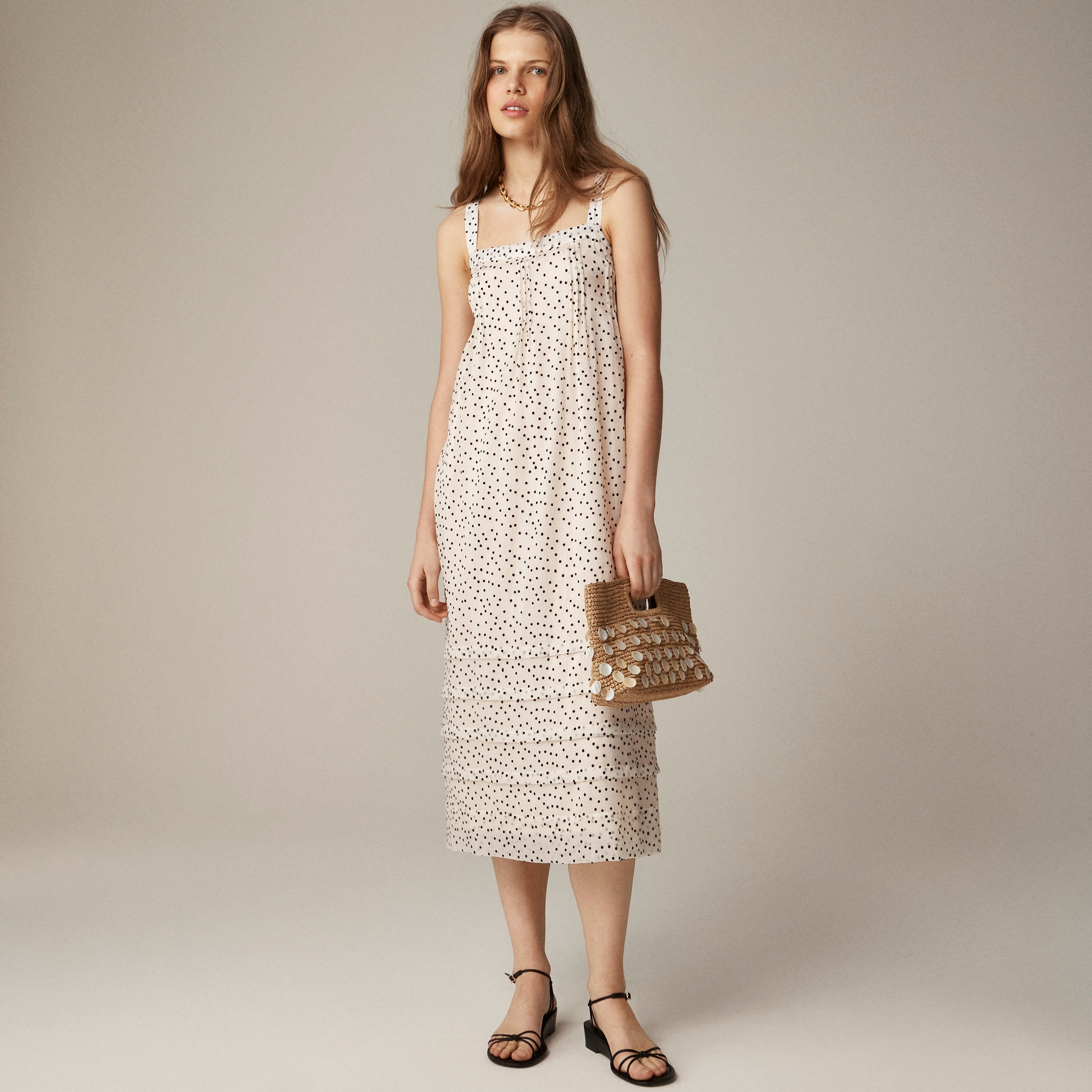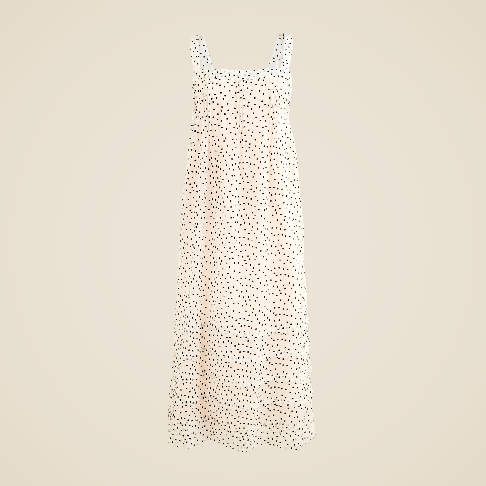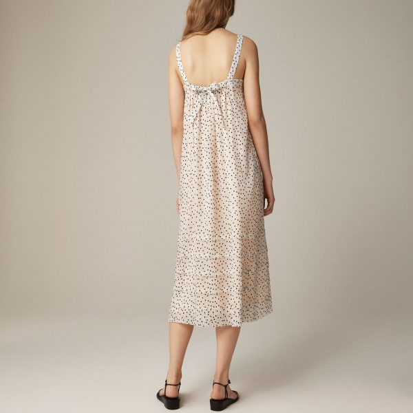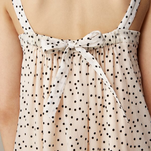 A dreamy dress that’s all about the details. With a subtle high-low hem, pleated pintucks up top and velvet dots all over, it’s an effortless option for fancier occasions, everyday activities and all things in between. Plus, it’s crafted from our new viscose organza, which is smooth, gossamery and lightweight.