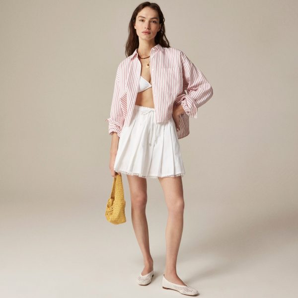 As easygoing as it gets. Crafted from crisp, breathable 100 percent cotton with pretty lace trim along the hem, a tie detail at the waist and plenty of pleats for movement and texture.