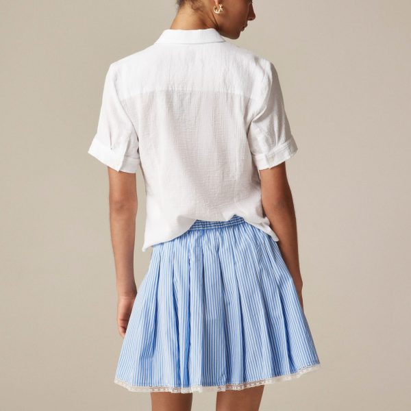 As easygoing as it gets. Crafted from crisp, breathable 100 percent cotton, with pretty lace trim along the hem, a tie detail at the waist and plenty of pleats for movement and texture.