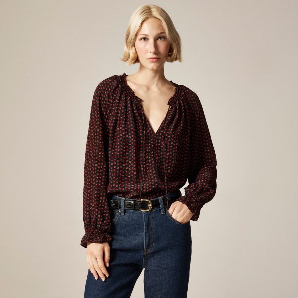 An easy popover with just the right amount of detail. This long-sleeve style is finished with romantic details like a shirred neckline, keyhole neck tie and gathered sleeves. Plus, it’s crafted from our crepe de chine, which is incredibly smooth and soft on the body. Lightweight enough for now, long-sleeve enough for later.
