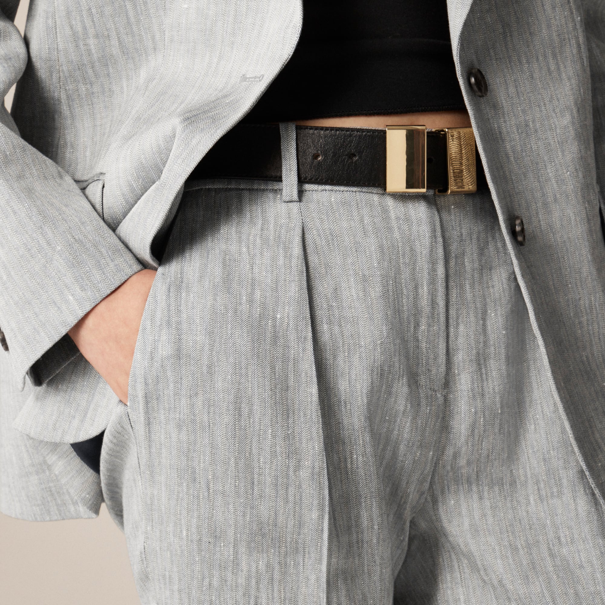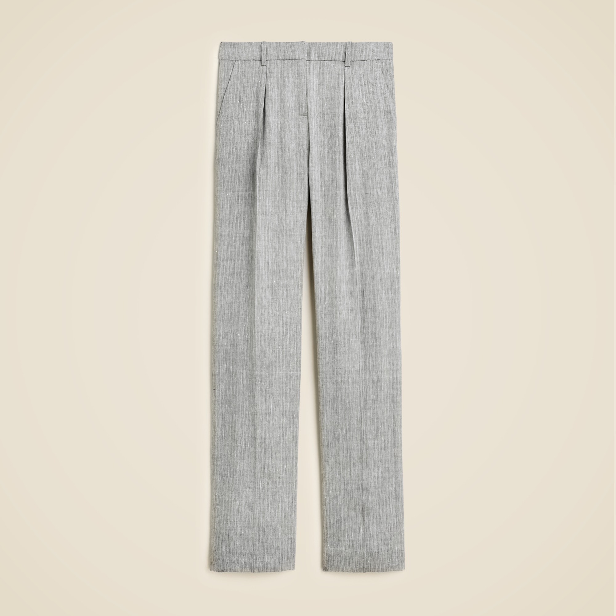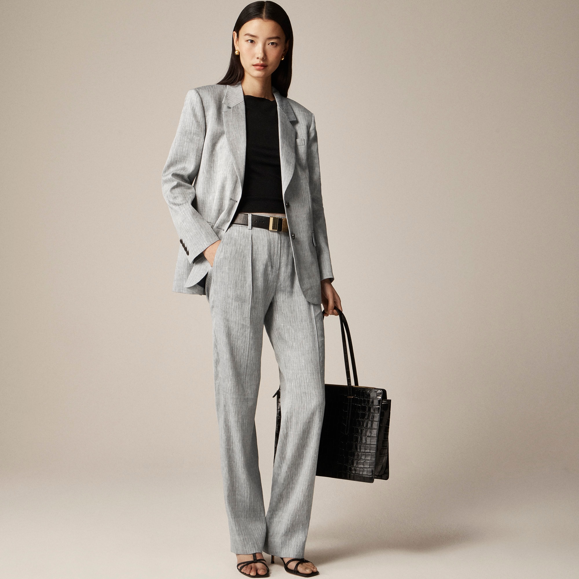Tailored details meet luxe fabrics. A new take on the trouser, with polished pleats down the front and a classic, straight leg that pairs perfectly with everything in your closet. Plus, it’s crafted in a luxe linen blend with a subtle herringbone texture.