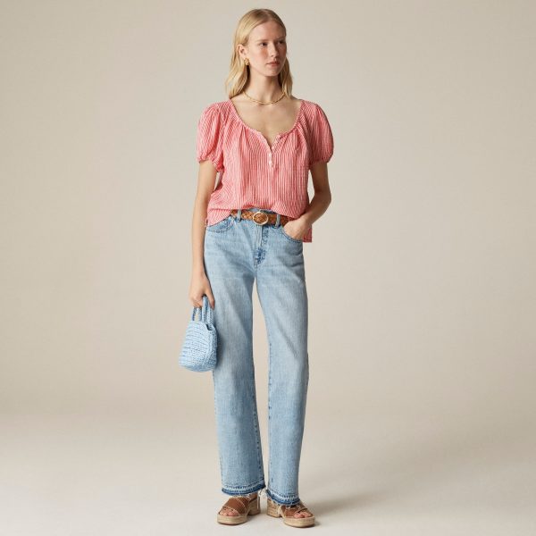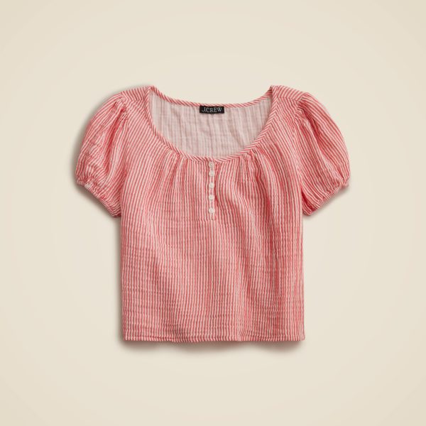 The everyday henley, made effortless and airy. Crafted in breathable cotton gauze, this popover shirt comes with a few small buttons down the front and subtle puff sleeves for a relaxed-yet-polished look. In other words, it’s the kind of piece that pairs perfectly with anything from denim shorts to breezy skirts.