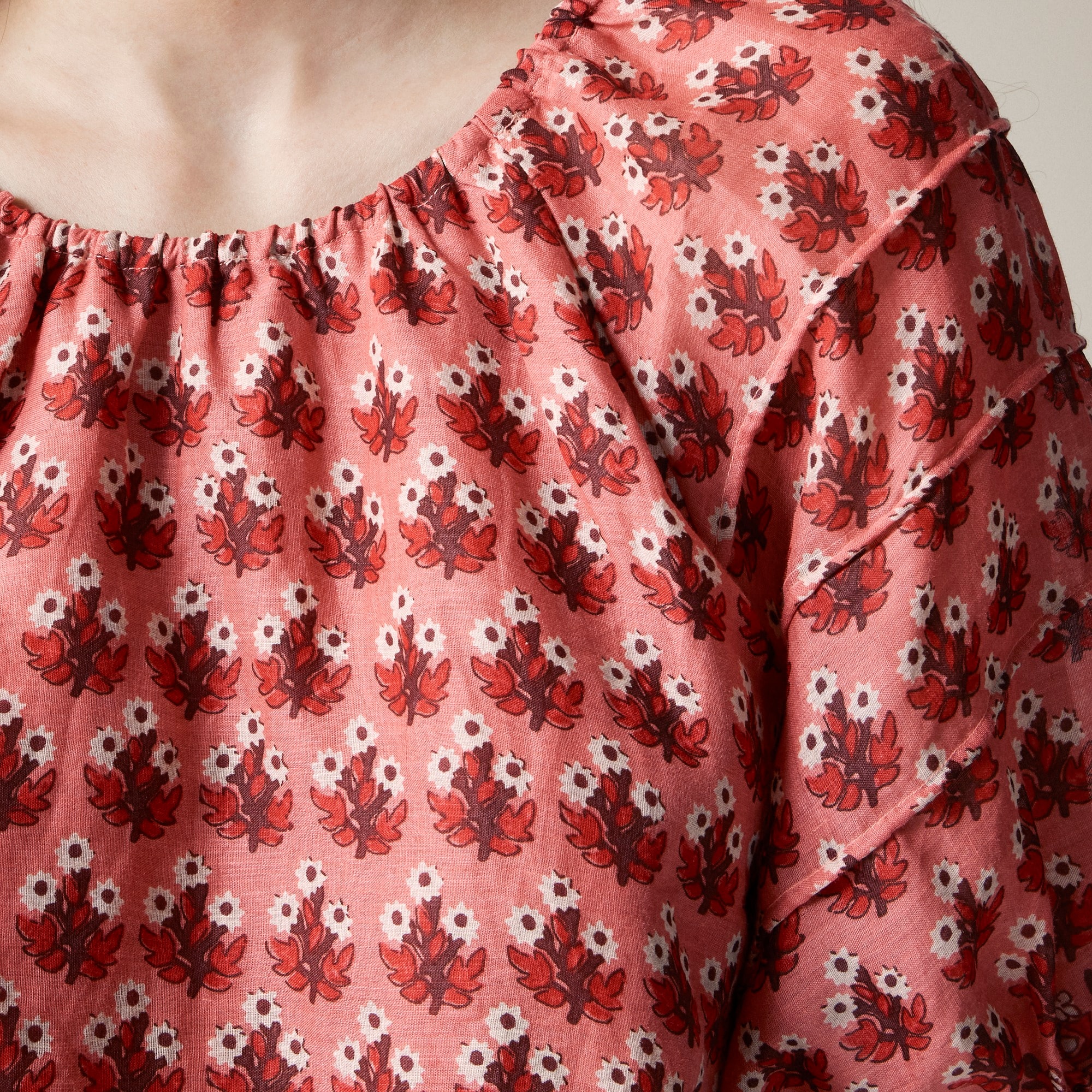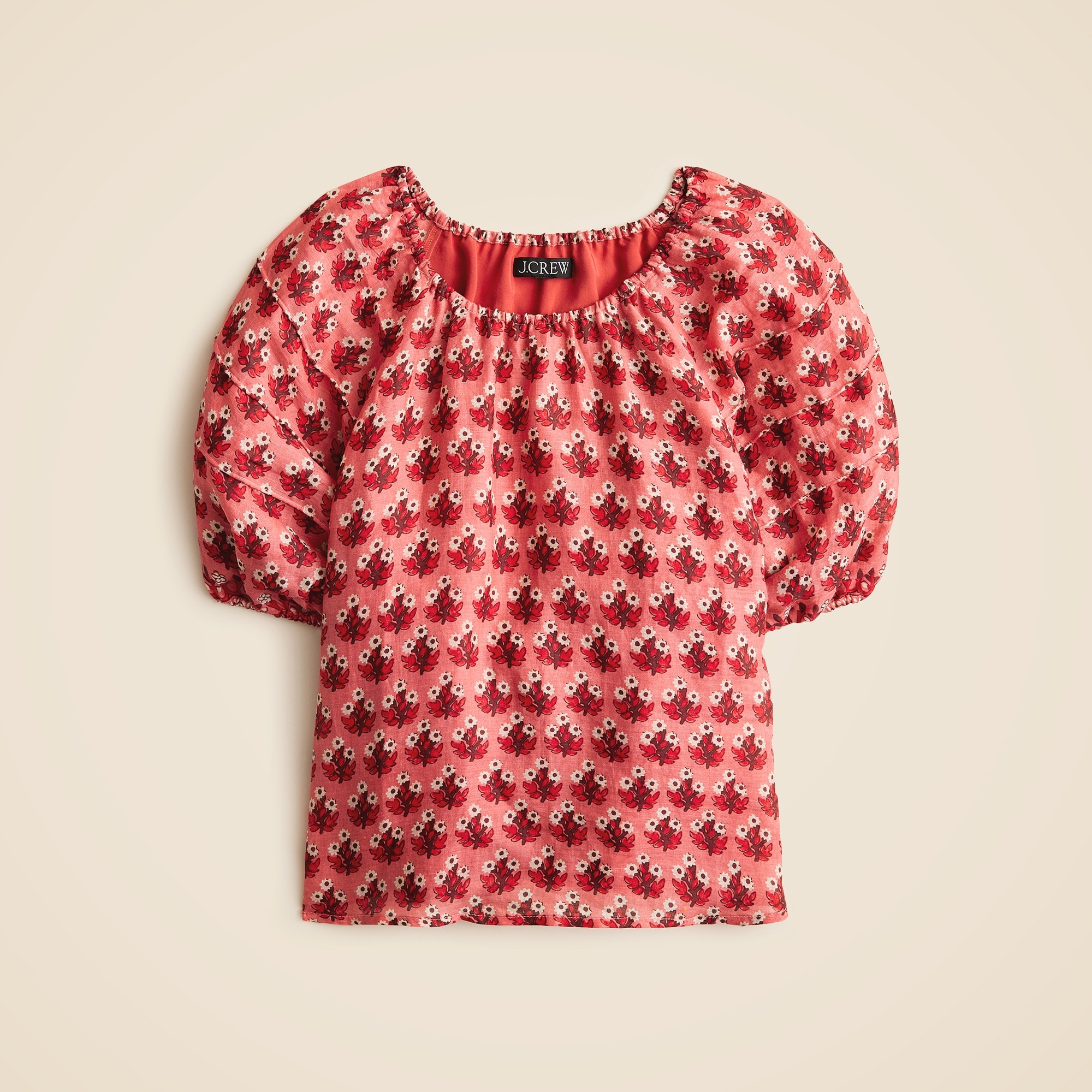 Sweet and vintage-inspired. Crafted from light-as-air ramie that’s like an alternative to linen, it comes with a gathered neckline and puff sleeves complete with pintuck details.