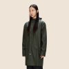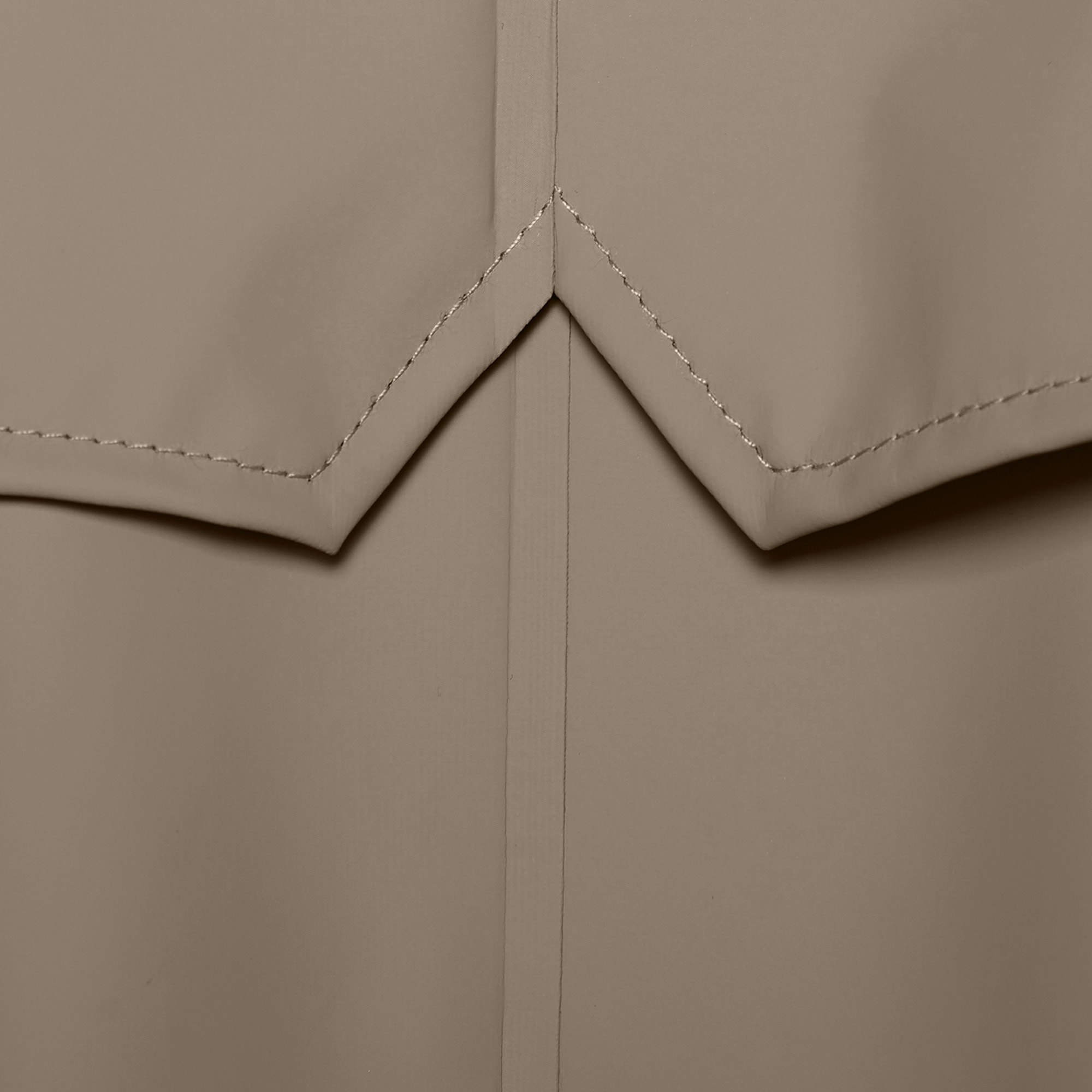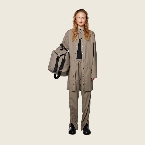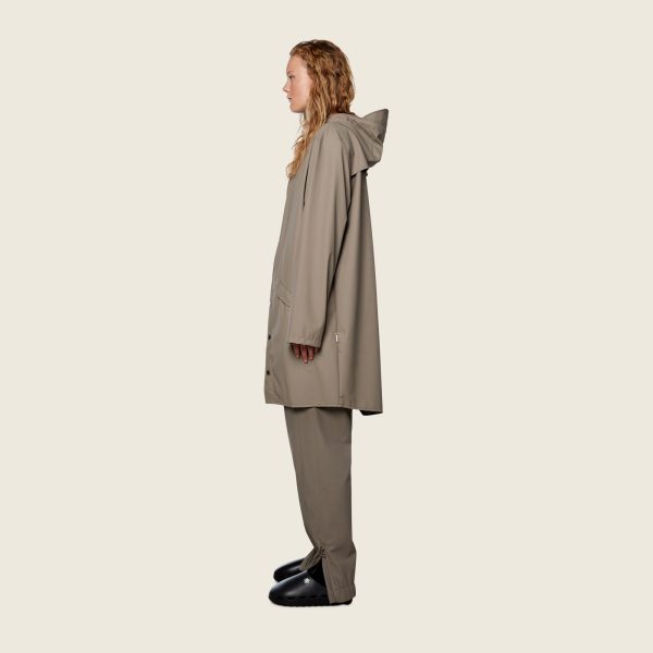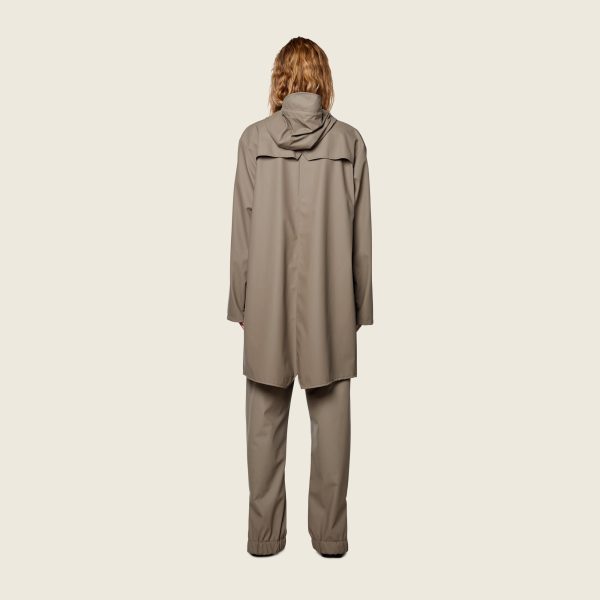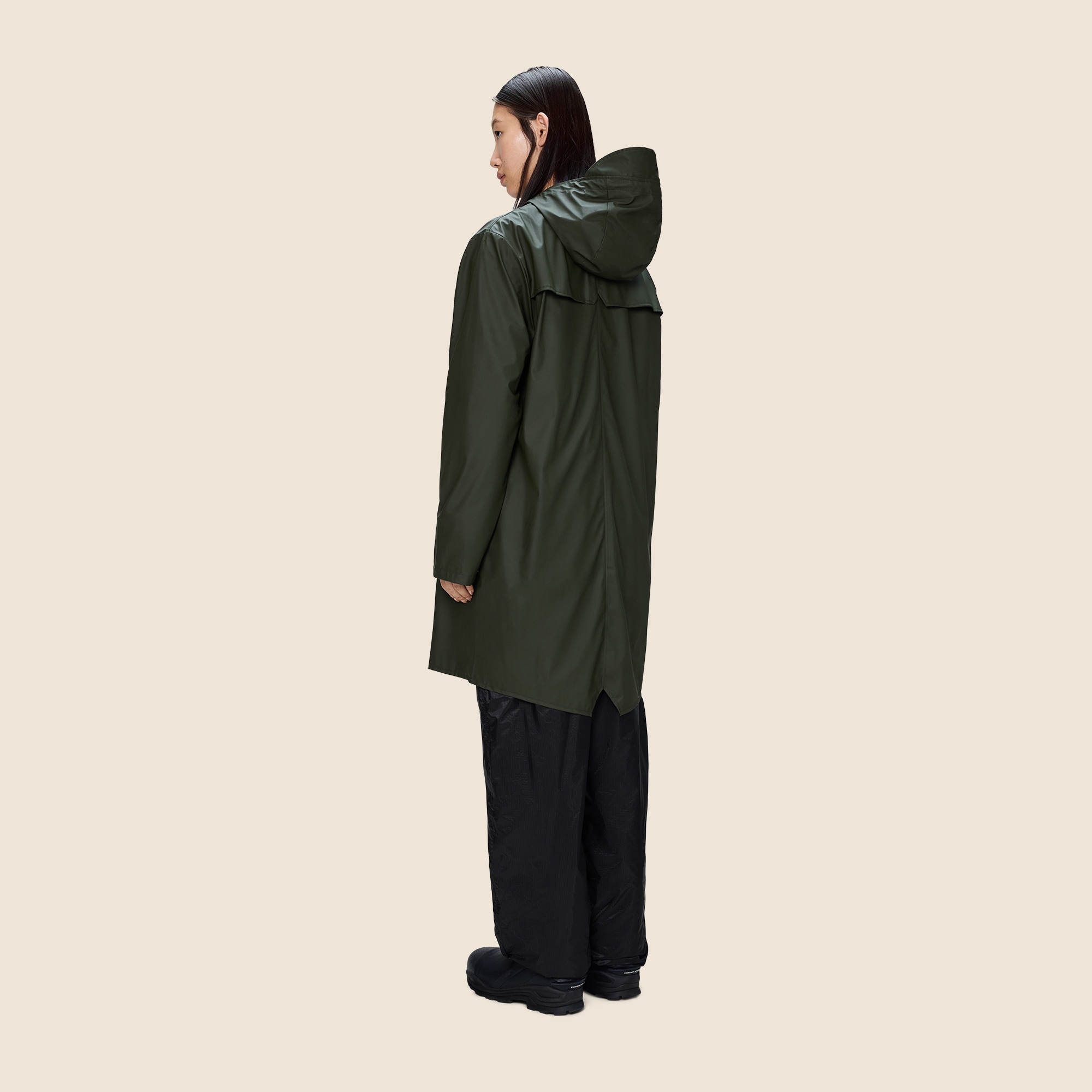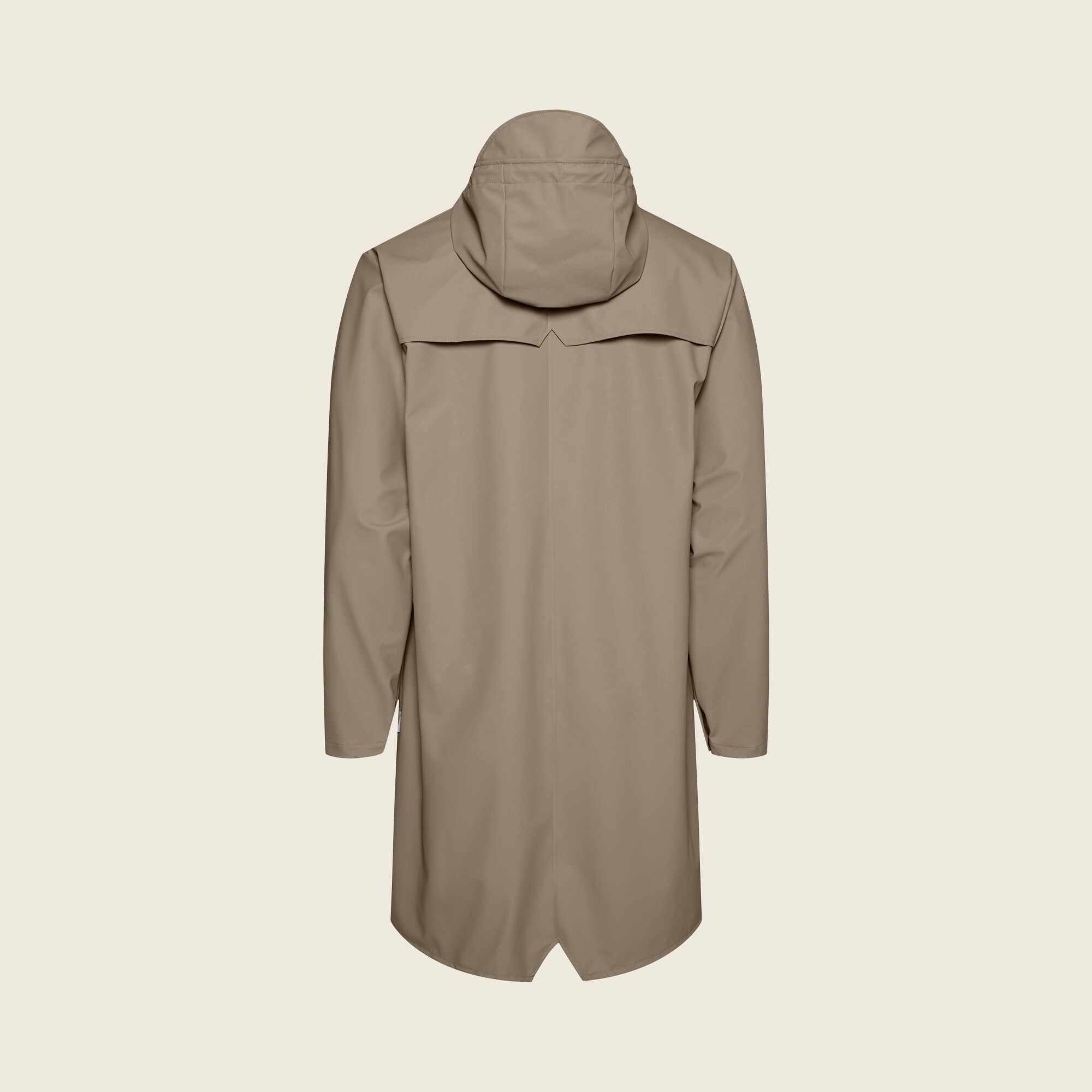 Long Jacket is a unisex rain jacket, characterized by a minimal silhouette in a long design. This rain jacket features a placket with snap fastenings for closure, a hood with a built-in cap and two side pockets with snaps. Sleeves are finished with snaps, making them adjustable for a loose or tight fit. The unisex rain jacket is complete with underarm eyelets and a back yoke with concealed vents for breathable comfort. Long Jacket is cut from Rains’s signature polyurethane fabric and features welded seams. Inspired by both Scandinavian weather patterns and clean Danish design, this innovative, Copenhagen-based brand is known for putting a fresh, modern spin on classic rubber outerwear and weatherproof accessories.