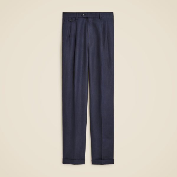 When you want the polish of a suit pant without wearing a full suit, our new relaxed-fit trousers are the answer. We cut this pant with a fuller fit and higher rise with double pleats, an extended front-tab closure, a buttoned coin pocket and affixed cuffs. Linen comes from the flax plant and is naturally breathable and strong, making it ideal for warm-weather suits. The herringbone weave adds subtle texture and is easy to dress up or down.