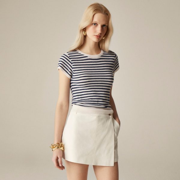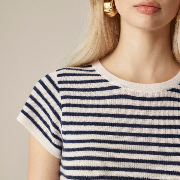 Ribbed Featherweight Cashmere T-shirt In Stripe For Women
