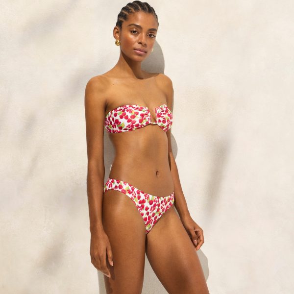 Our signature sporty fit. This style comes with a low-to-mid-rise, a medium amount of coverage in the back and a sweet fruit print that pairs back to our beach apparel.