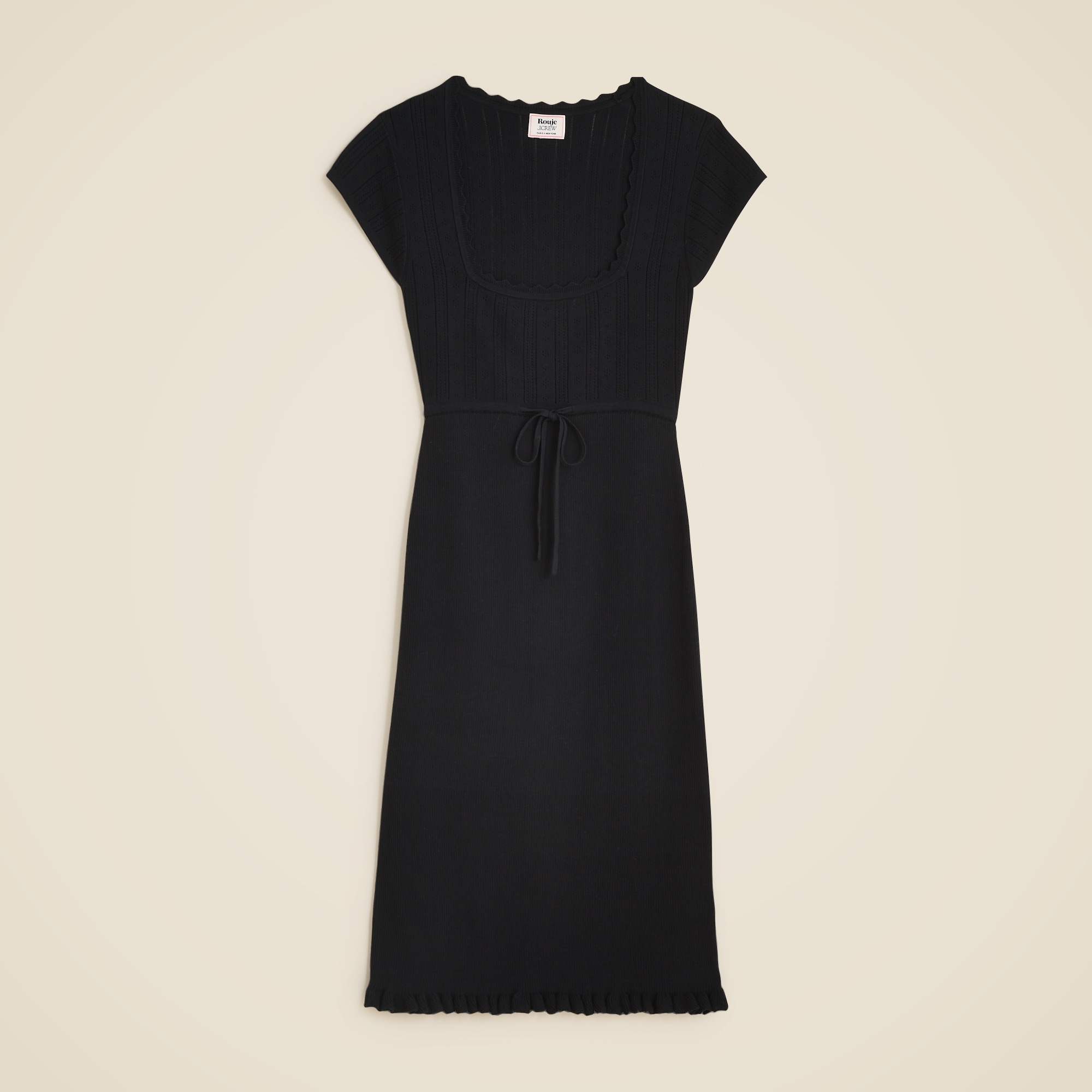 Paris meets New York. Rouje meets J.Crew. We collaborated with the Parisian brand on an exclusive capsule of romantic ’90s-inspired piecesu0026mdash;all with a certain u003ciu003eje ne sais quoiu003c/iu003e. Meet the Siru0026egrave;ne sweater-dress: our new take on the LBD, with sweet cap sleeves, a tie under the bust and a ruffle at the hem. It’s effortless, a little coquettish and tru0026egrave;s wearableu0026mdash;day or night.