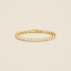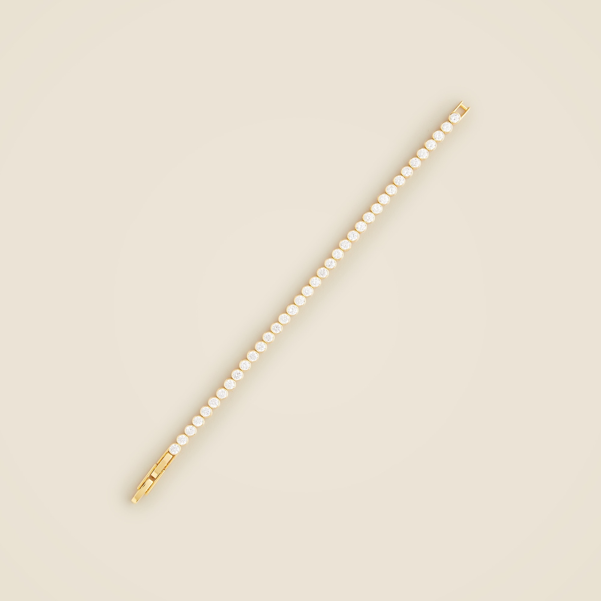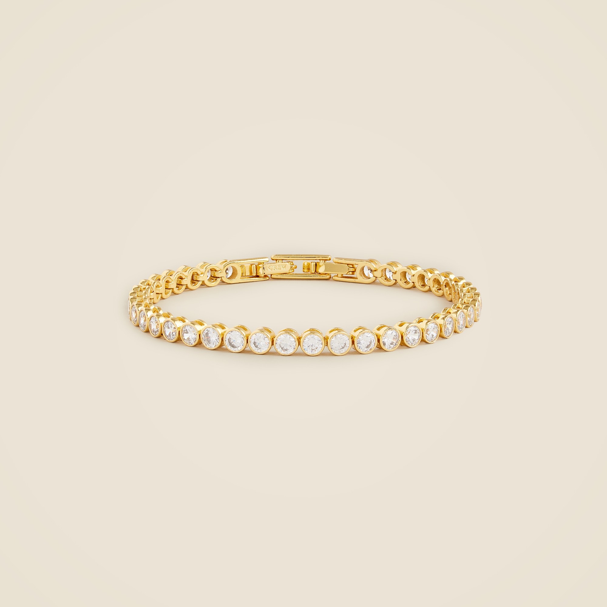 For a subtle hint of shine. . .just add this elegant, bezel-set cubic zirconia bracelet to any outfit. Plus, we added a special double clasp so you can adjust the length. Feel-good fact: This style was made using eco-friendly recycled-brass casting. Want to keep your jewelry looking like new? We recommend removing it before showering or exercise and putting it on after applying hair products or perfume. To clean your pieces, polish them with a soft, dry clothu0026mdash;and when not wearing, store them in a pouch or jewelry case.