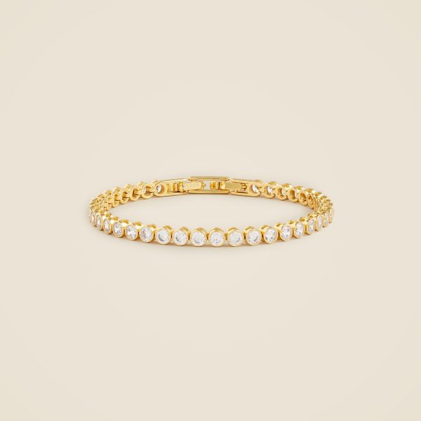 For a subtle hint of shine. . .just add this elegant, bezel-set cubic zirconia bracelet to any outfit. Plus, we added a special double clasp so you can adjust the length. Feel-good fact: This style was made using eco-friendly recycled-brass casting. Want to keep your jewelry looking like new? We recommend removing it before showering or exercise and putting it on after applying hair products or perfume. To clean your pieces, polish them with a soft, dry clothu0026mdash;and when not wearing, store them in a pouch or jewelry case.