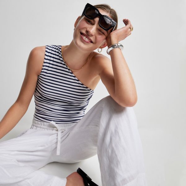 We re-imagined every single suit in our swim collection using over 60 percent recycled materials to help keep waste out of oceans and landfills. This one-shoulder take on our best-selling swimsuit is crafted from a special fabric that incorporates recycled nylon. Plus, everything is more flattering with a bit of ruching.