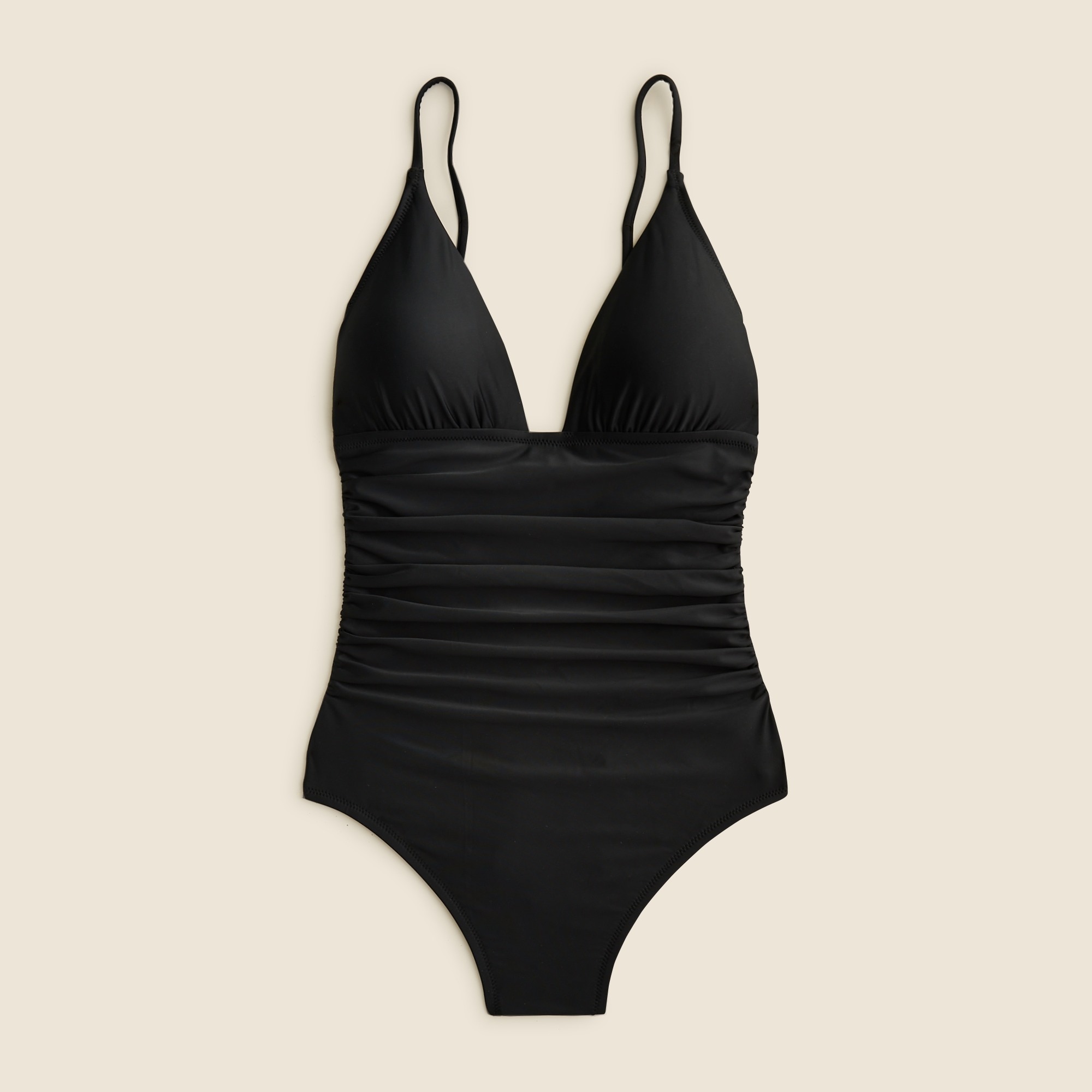 Everything is more flattering with a bit of ruching. Especially this one-piece suit, with a classic, flattering, deep V-neck.