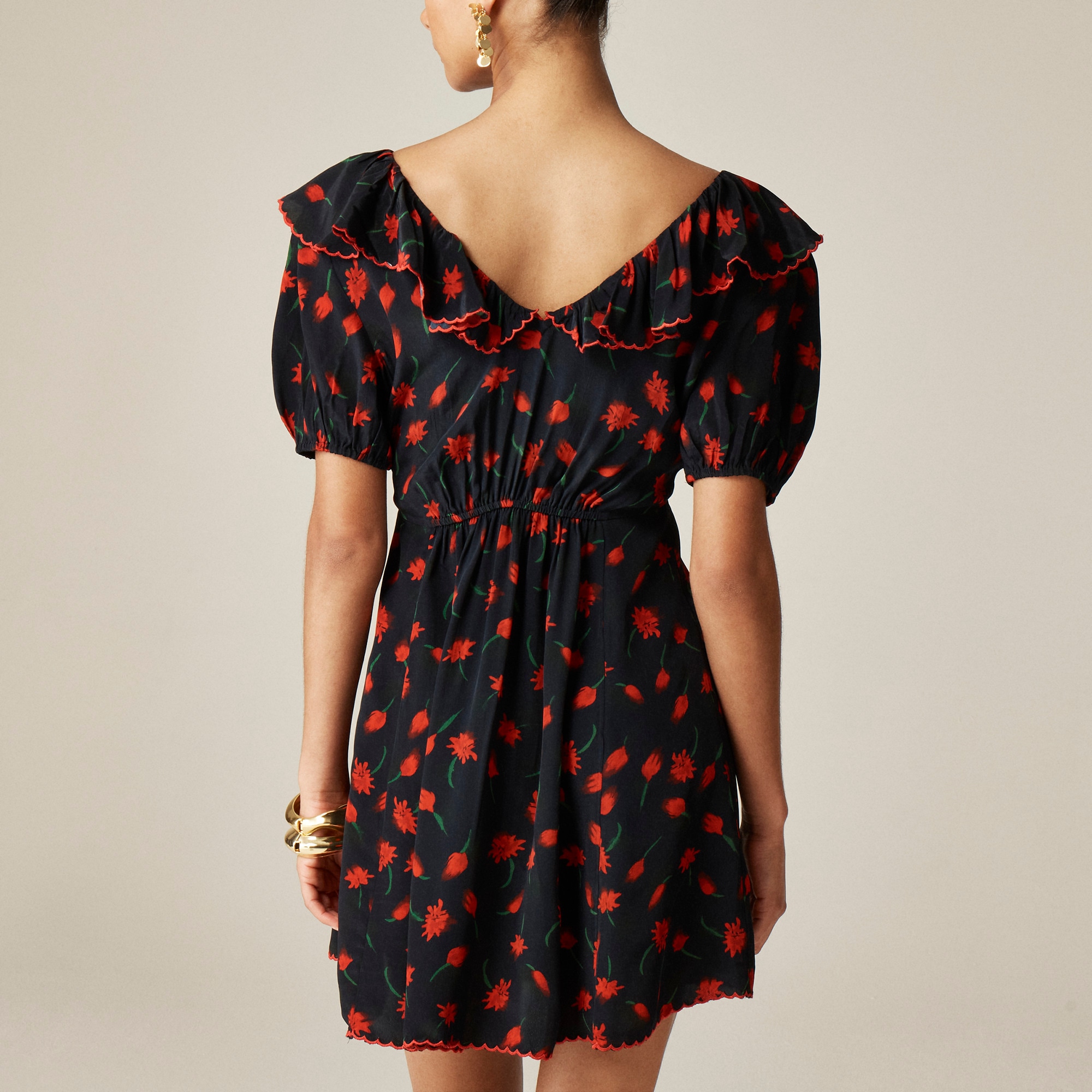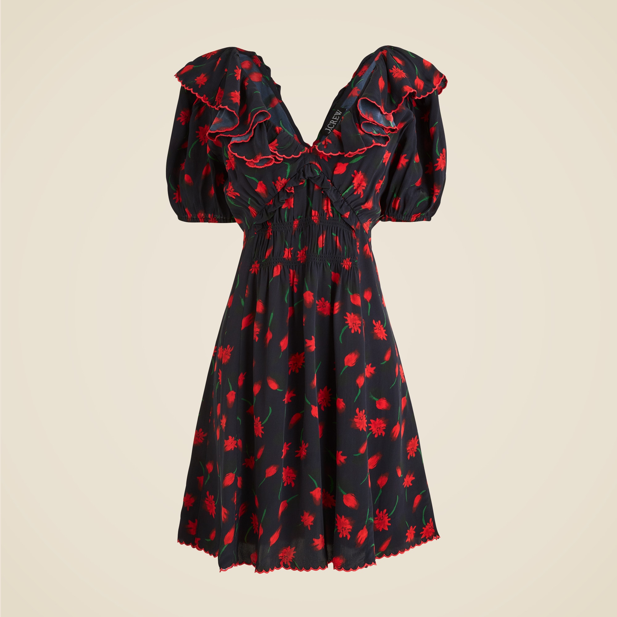 A fresh take on florals. This standout spring-to-summer dress comes with a subtly dramatic ruffle along the neckline, pretty puff sleeves and flattering smocking at the waist. Another detail we love? Sweet, scalloped trims that makes the perfect finishing touch.