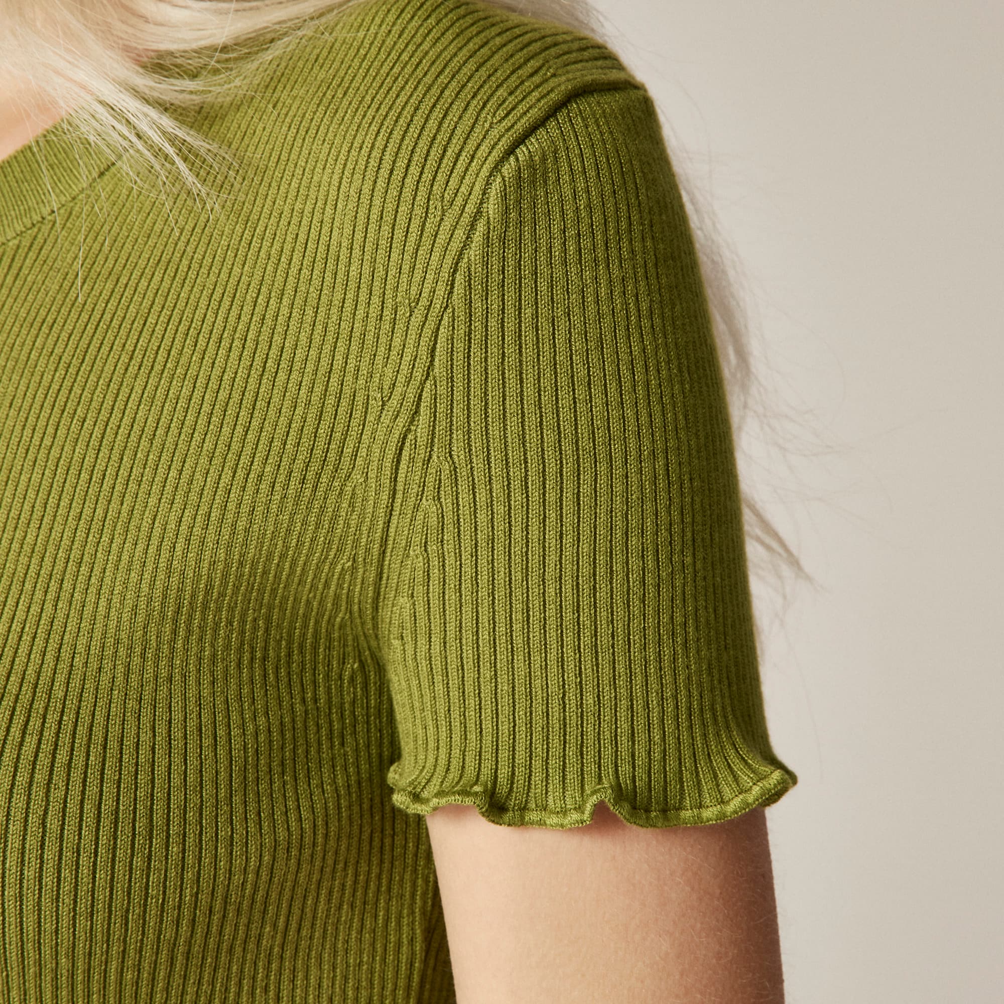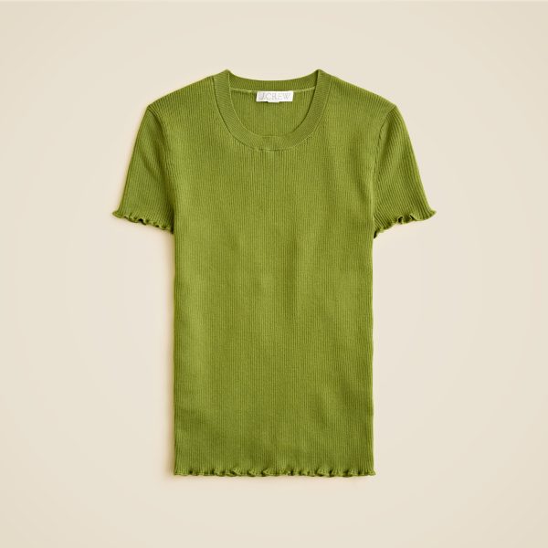A silky-soft new closet essential. This sweet tee comes in a closer fit, so you don’t have to worry about tucking it in. Plus, it’s designed with playful lettuce-trim details at the sleeves and a ribbed texture throughout.
