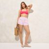 Sporty and sleek. This flattering style comes with a face-framing square neckline and a scrunchie, textured finish all over. Plus, it’s made with polyester recycled from materials that could otherwise go to landfills.