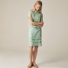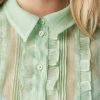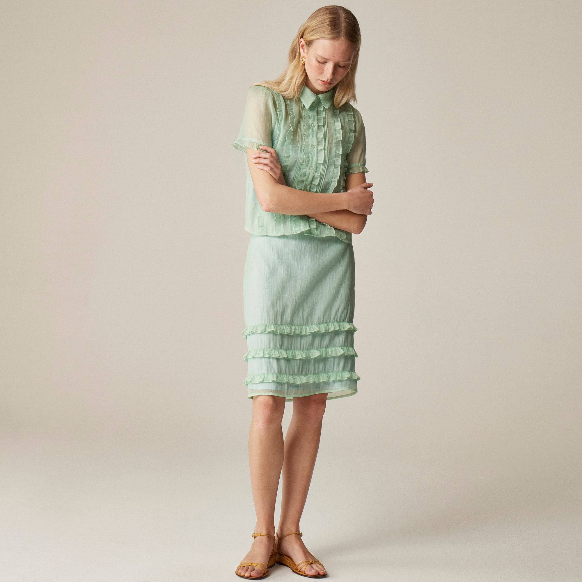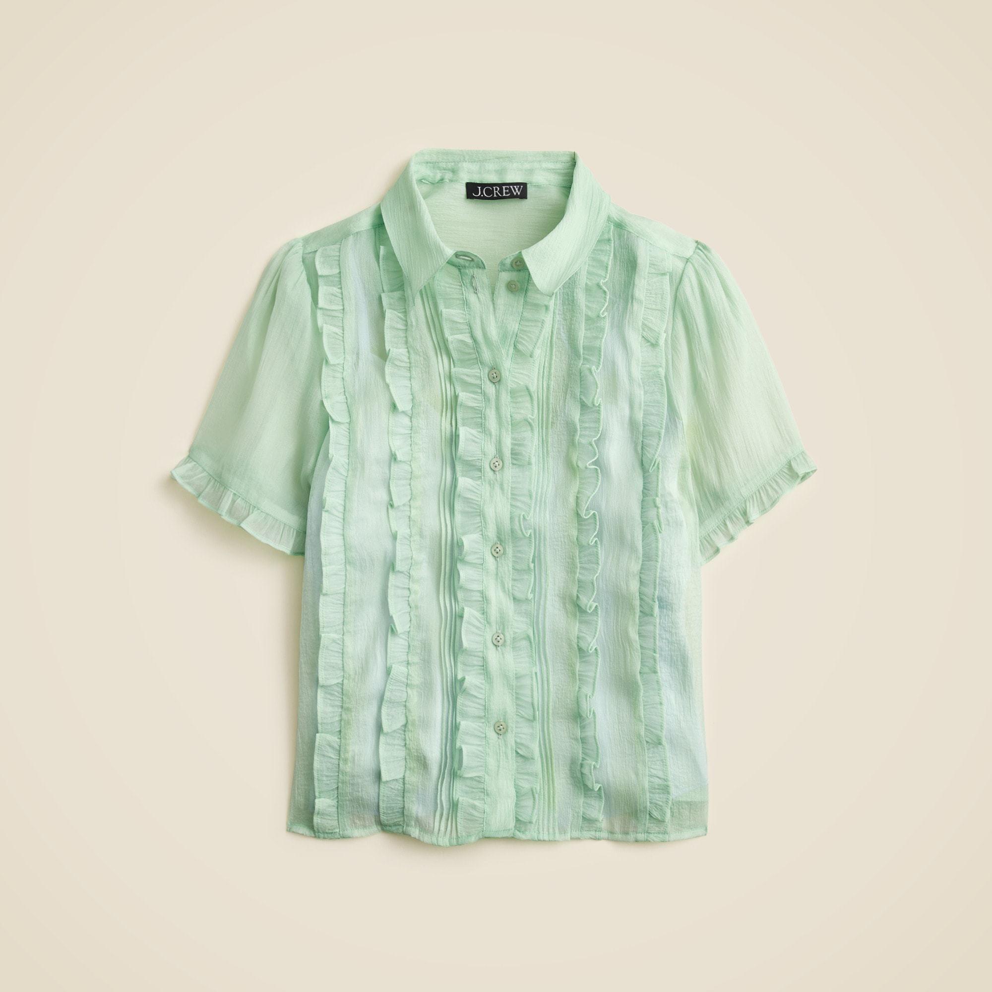 A playful mix of color and texture. This short-sleeve button-up comes with a sheer layer on top and a blue camisole lining underneath, plus lots of pretty ruffle detailing for all the visual interest. It’s crafted from a pre-crinkled fabric for a distinctive, dimensional look we love