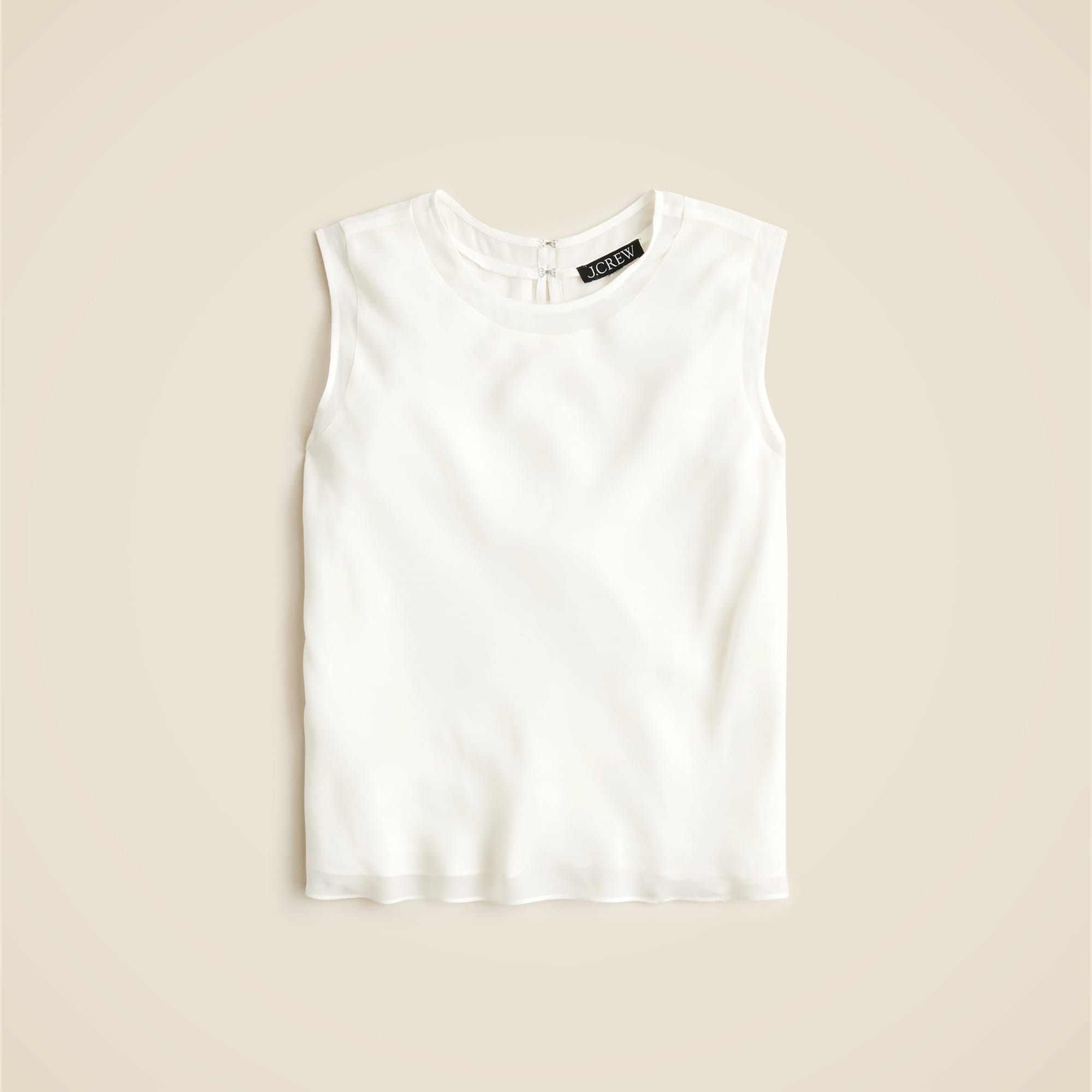 A dressier take on a throw-on-and-go. This sleeveless top is designed in an easy silhouette that feels polished enough for work but relaxed enough for everything after. Made from airy 100 percent viscose chiffon with a softly structured drape and sheer paneling details along the hem and sleeves.