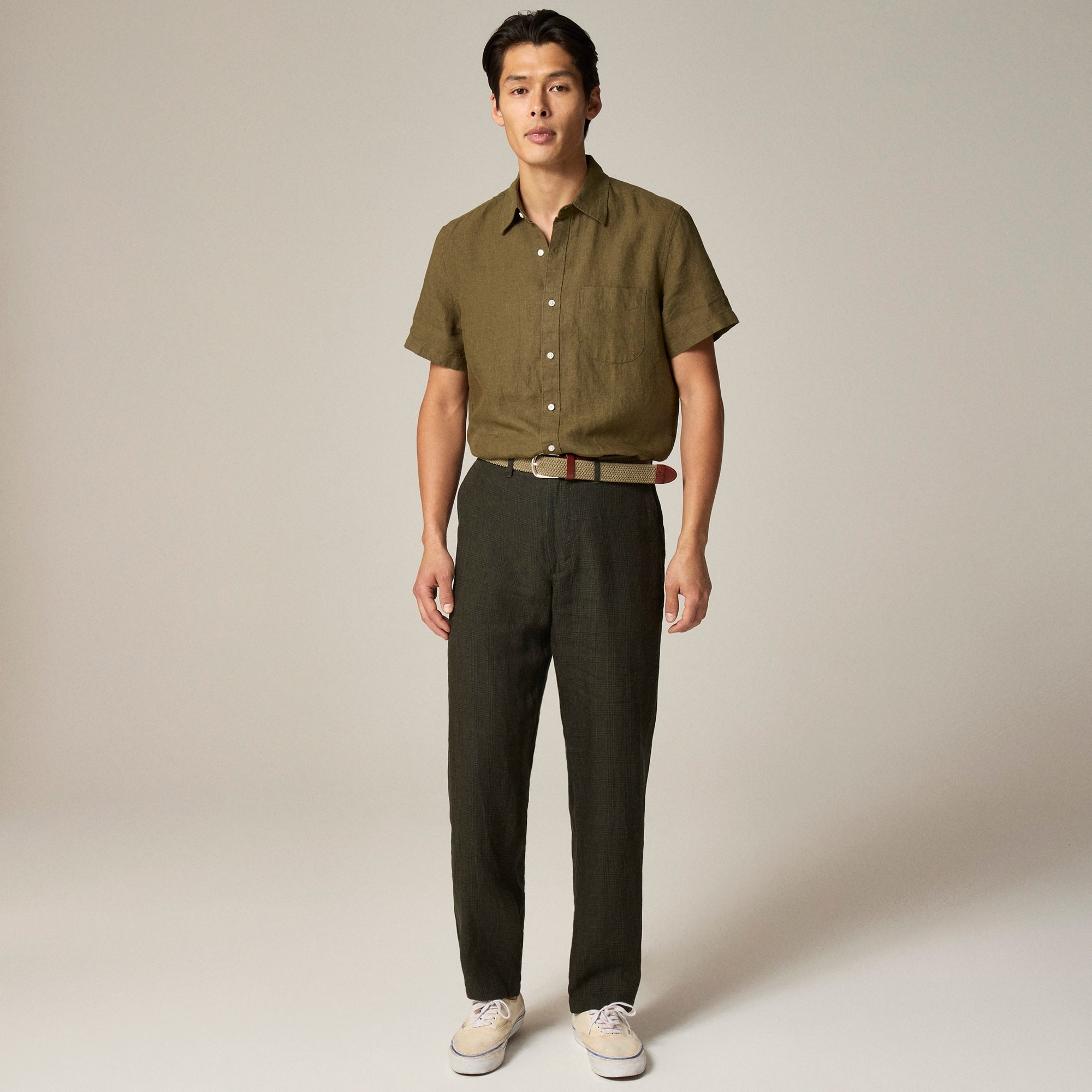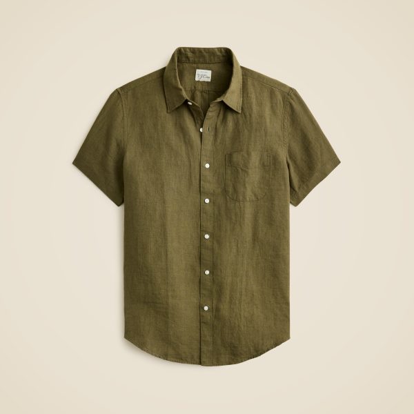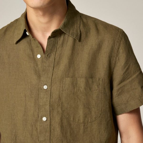 We weave this short-sleeve shirt in supersoft premium linen. It’s perfect for keeping cool while looking polishedu0026mdash;but not too polished. Linen’s natural texture actually makes it look even better with a few creases. Designed with a classic point collar, this shirt is a warm-weather essential.