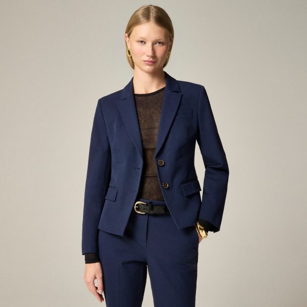 A modern blazer style with a schoolboy-inspired fit. It’s slimmer and shorter, so it hits at the hip, and it comes with a chest-pocket detail. Crafted in comfy bi-stretch cotton, you can rest assured knowing it feels as good as it looks. Plus, it’s made with LENZINGu0026trade; ECOVEROu0026trade; Viscose that’s sourced from responsibly managed forests and produced with less water and lower emissions.