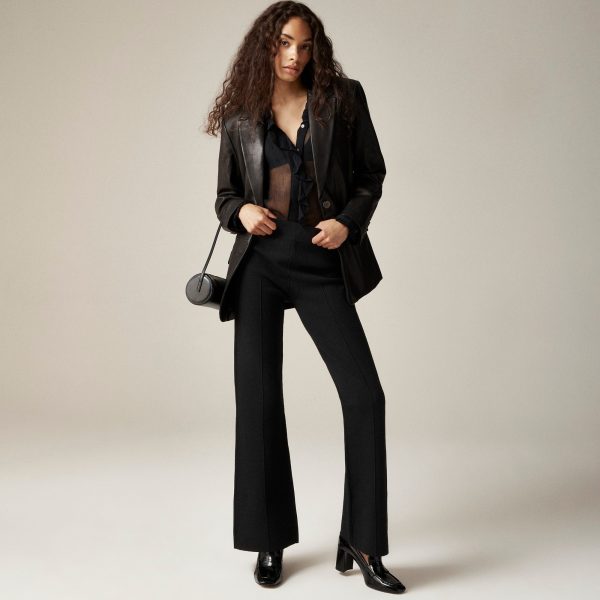 Sleek, soft and subtly flared. A superstretchy pair with a comfy elastic waistband, a slim fit up top and a gradually widening leg, made for lounge days, office days and in-between days.