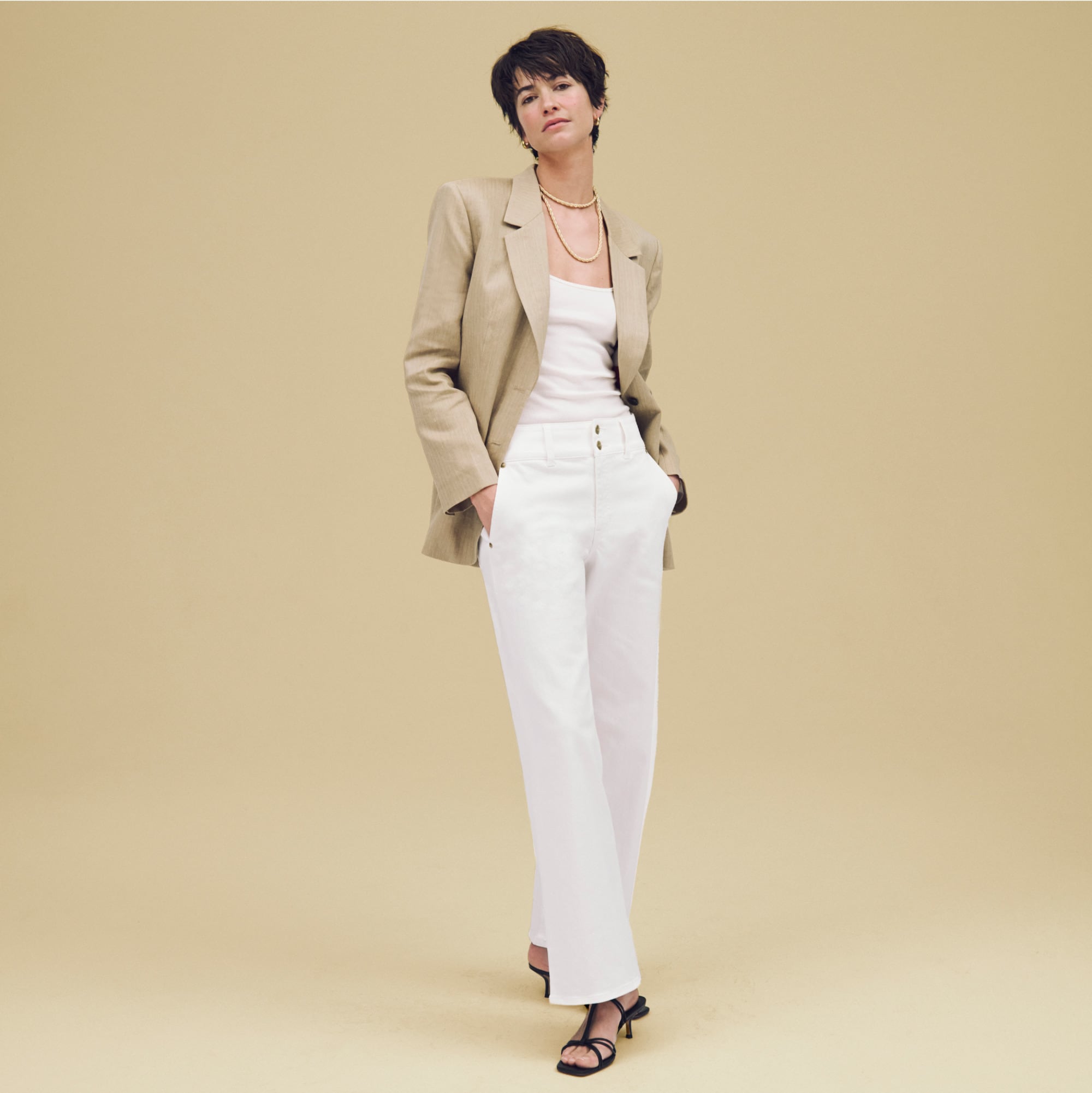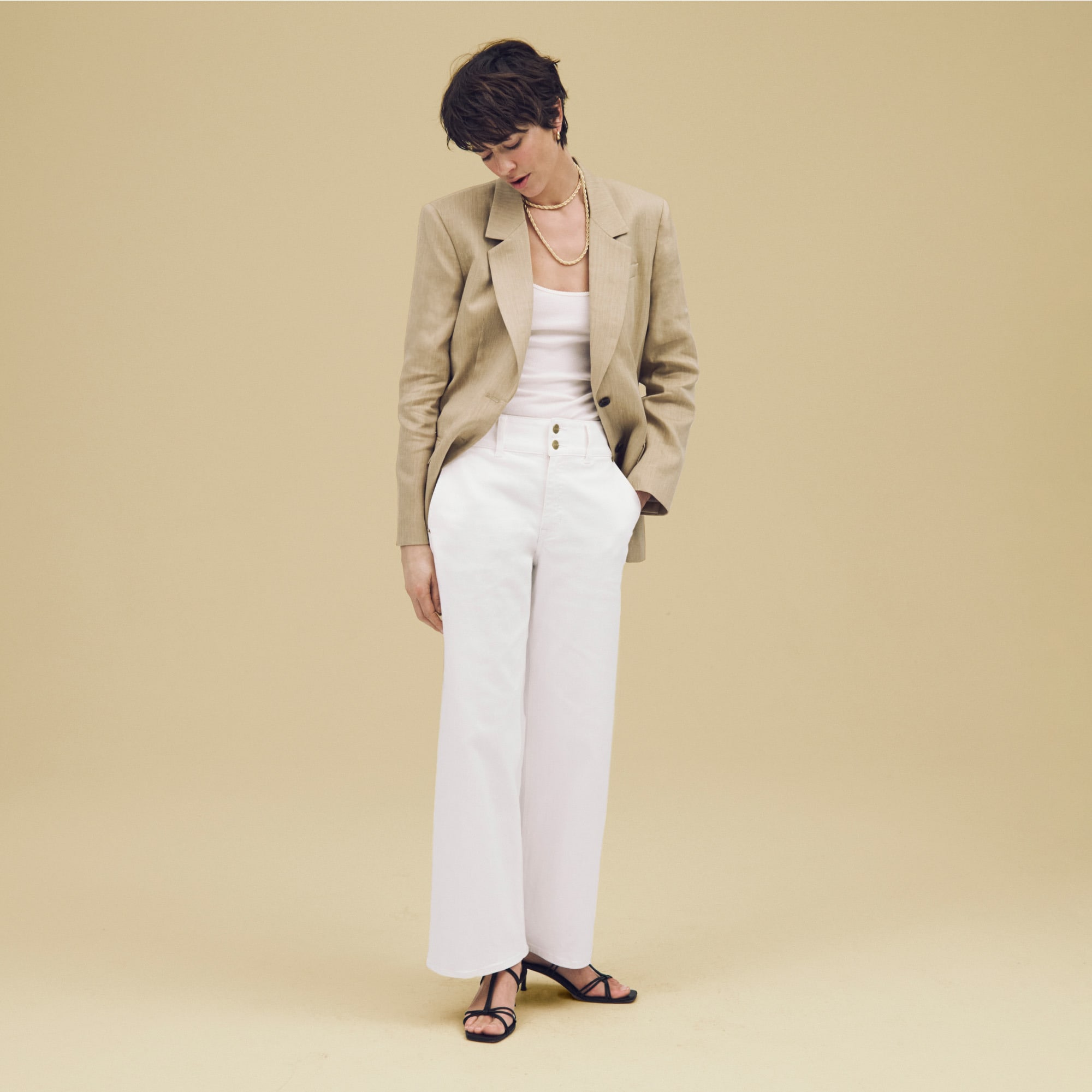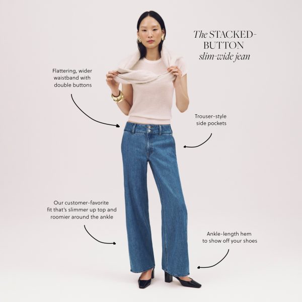 The new jean you need. With double-button details up top and a flattering wider waistband, it’s our favorite way to upgrade your everyday. Plus, it comes with trouser-style side pockets for added polish and a slimmer fit up top that gradually gets wider toward the hem. It’s crafted from our 1996 semi-stretch, so it’s structured, durable and designed for all-day comfort. All of the cotton we use for this jean is fully traceable to farms that are certified to the standards of regenagriu0026reg;, an agricultural program devoted to encouraging biodiversity, reducing greenhouse-gas emissions and securing the health of the land and the people who live and work there.