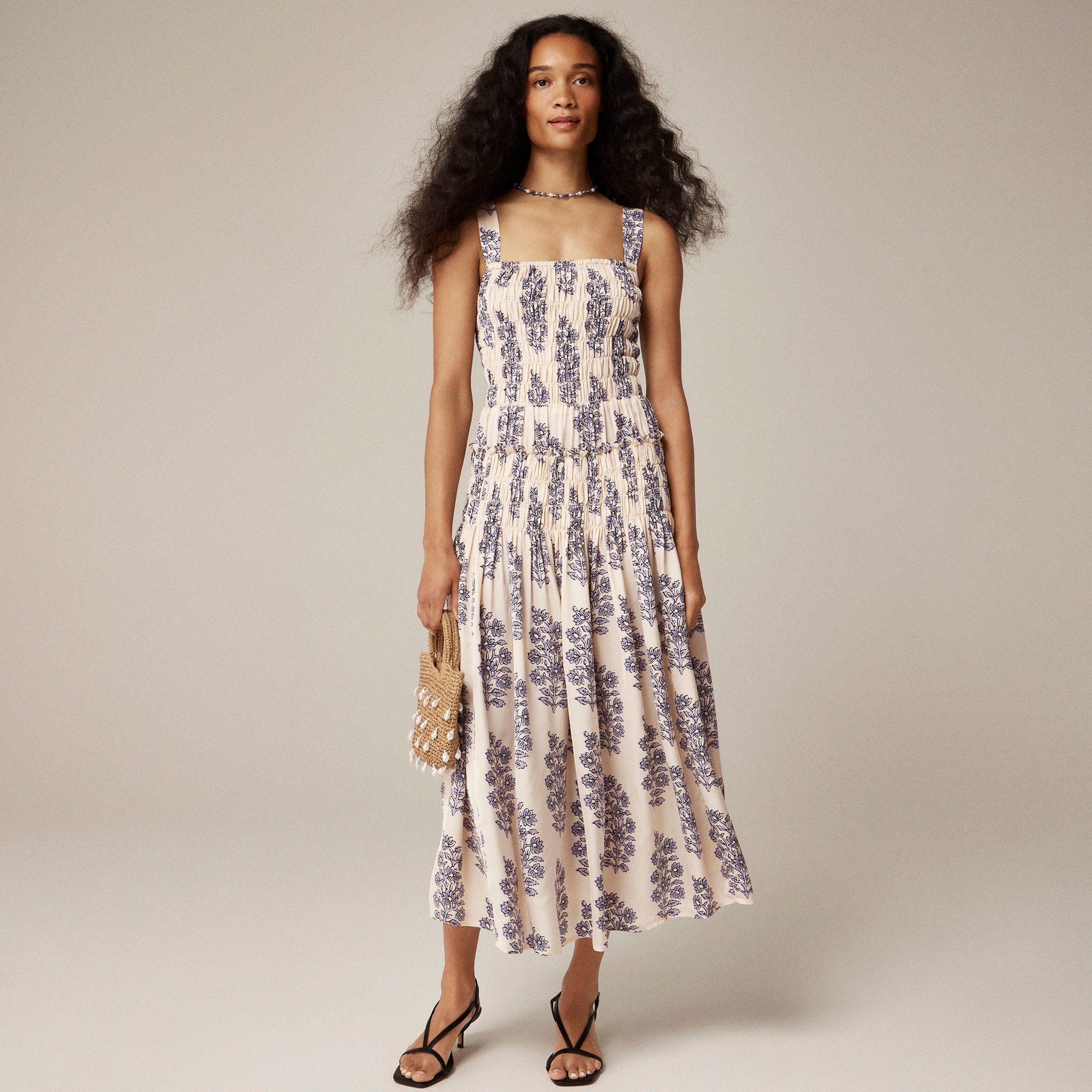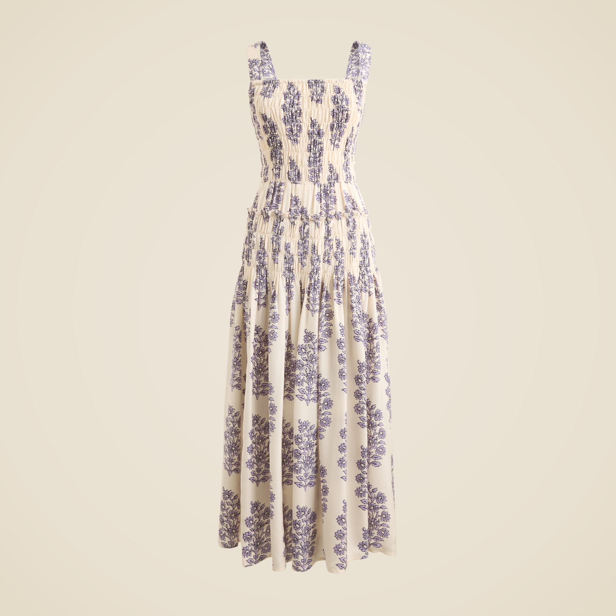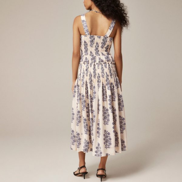 Smocked-bodice Midi Dress In Blooming Lilac Block Print For Women