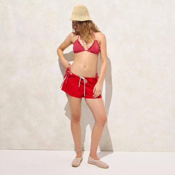 The classic string bikini top, now with new details. It comes with ruffle trim along the edges and a sweet, smocked texture all over. Plus, it pairs perfectly with the matching string bikini bottom.