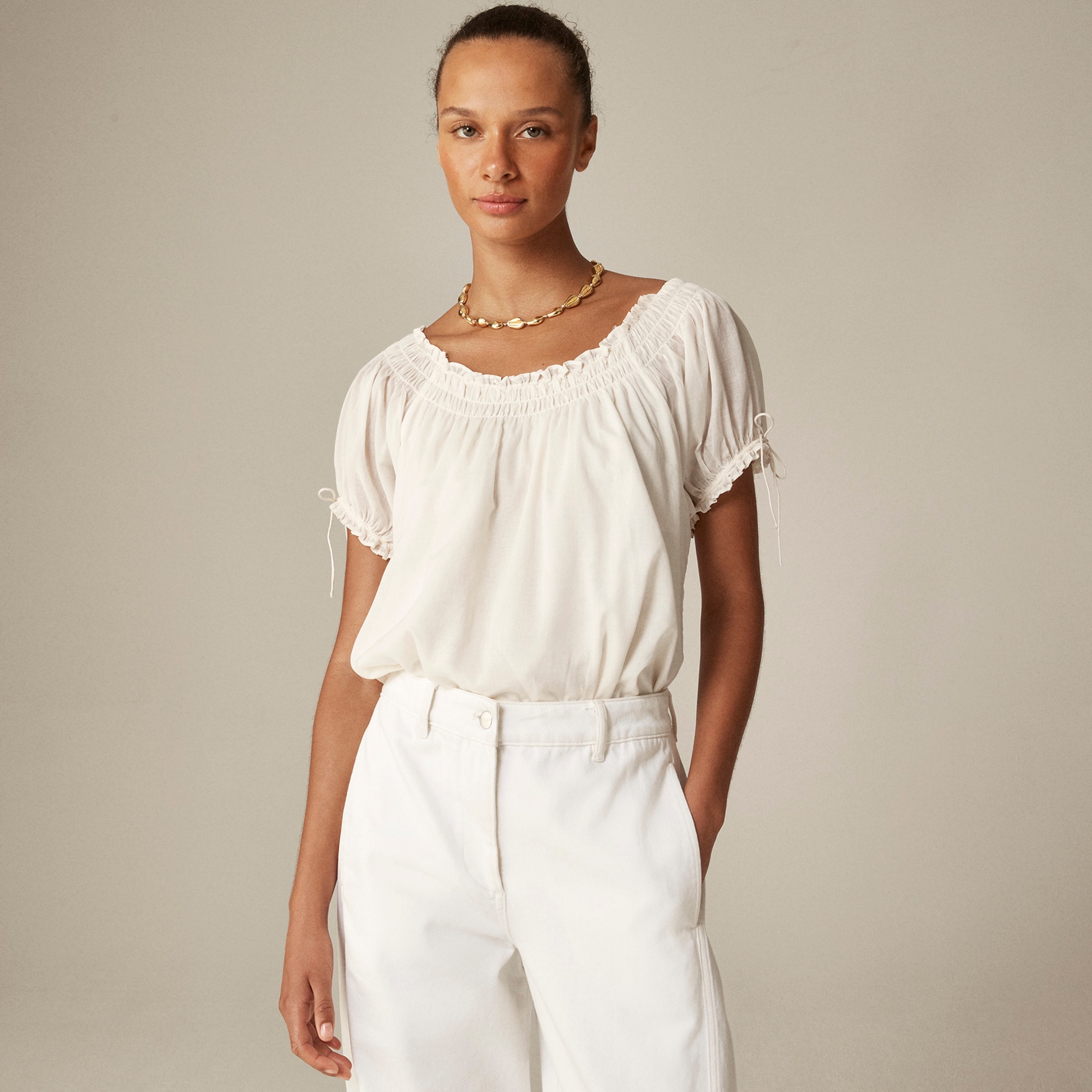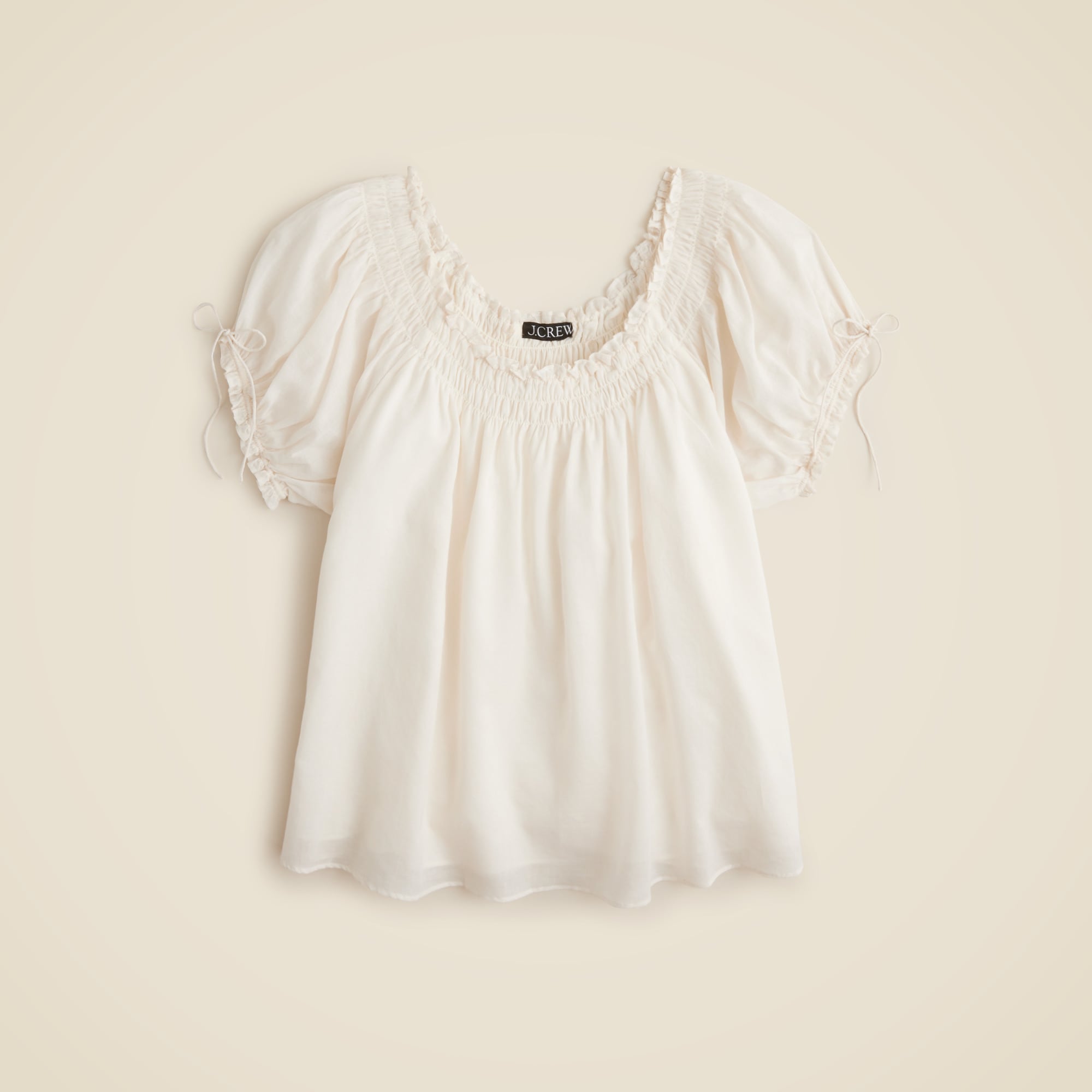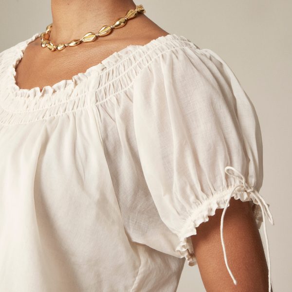 Smocked Ruffle-trim Top In Cotton Voile For Women
