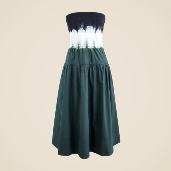 Artistic details, touches of structure and lots of flow. This strapless style comes with boning at the bodice for added support, a swingy skirt and a dimensional, dip-dyed finish in shades of white and blue. Plus, it’s crafted from our crisp, customer-favorite cotton-blend poplin for a neat, just-pressed look and feel.
