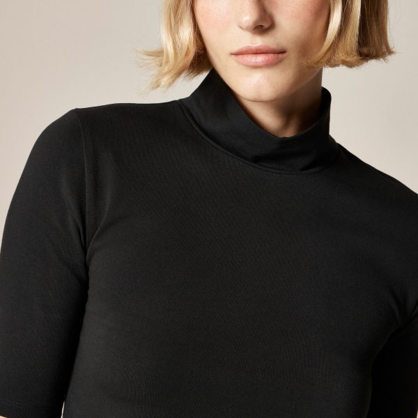 A fresh take on the tee. Made to be paired with just about everything in your closet, this style is crafted from our stretch cotton-blend fabric that’s lightweight, contouring and that stretches in all directions for a streamlined fit and feel. It’s designed with sleeves that hit a little bit higher than your typical T-shirt and a sleek mockneck silhouette that feels supermodern.