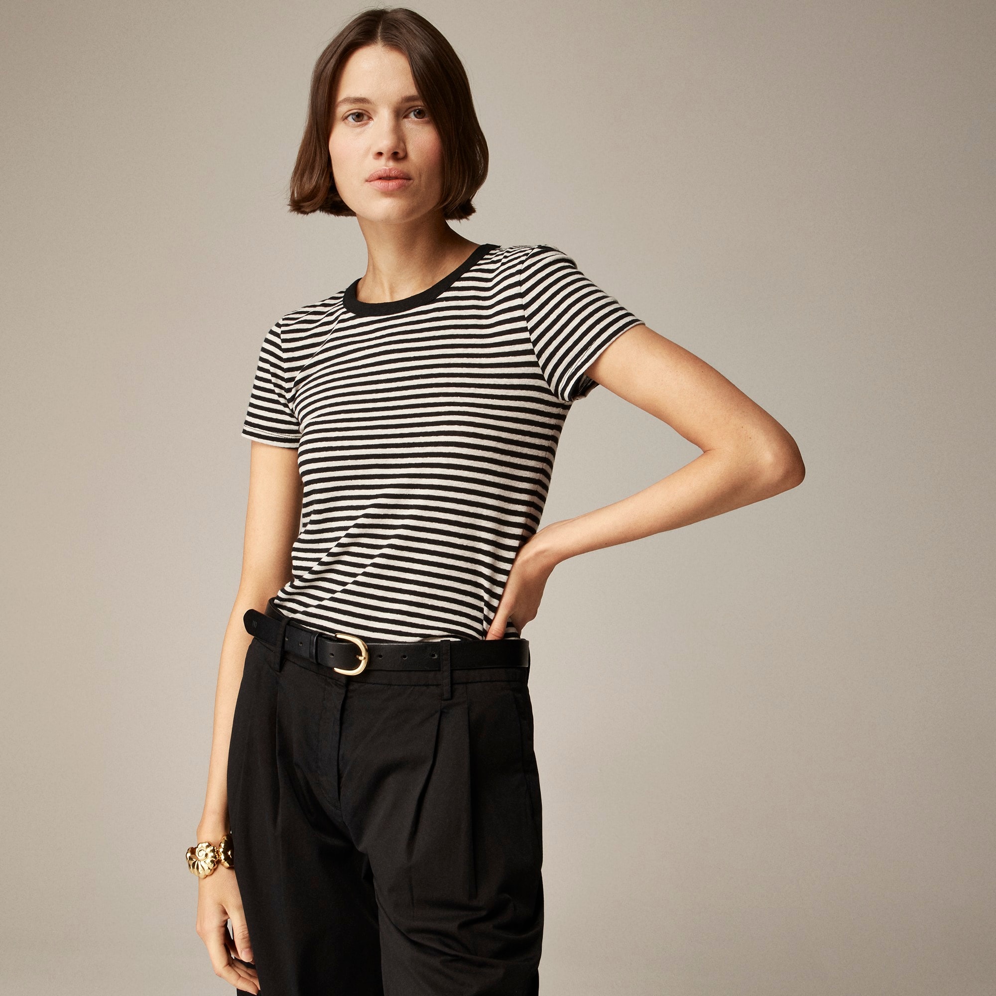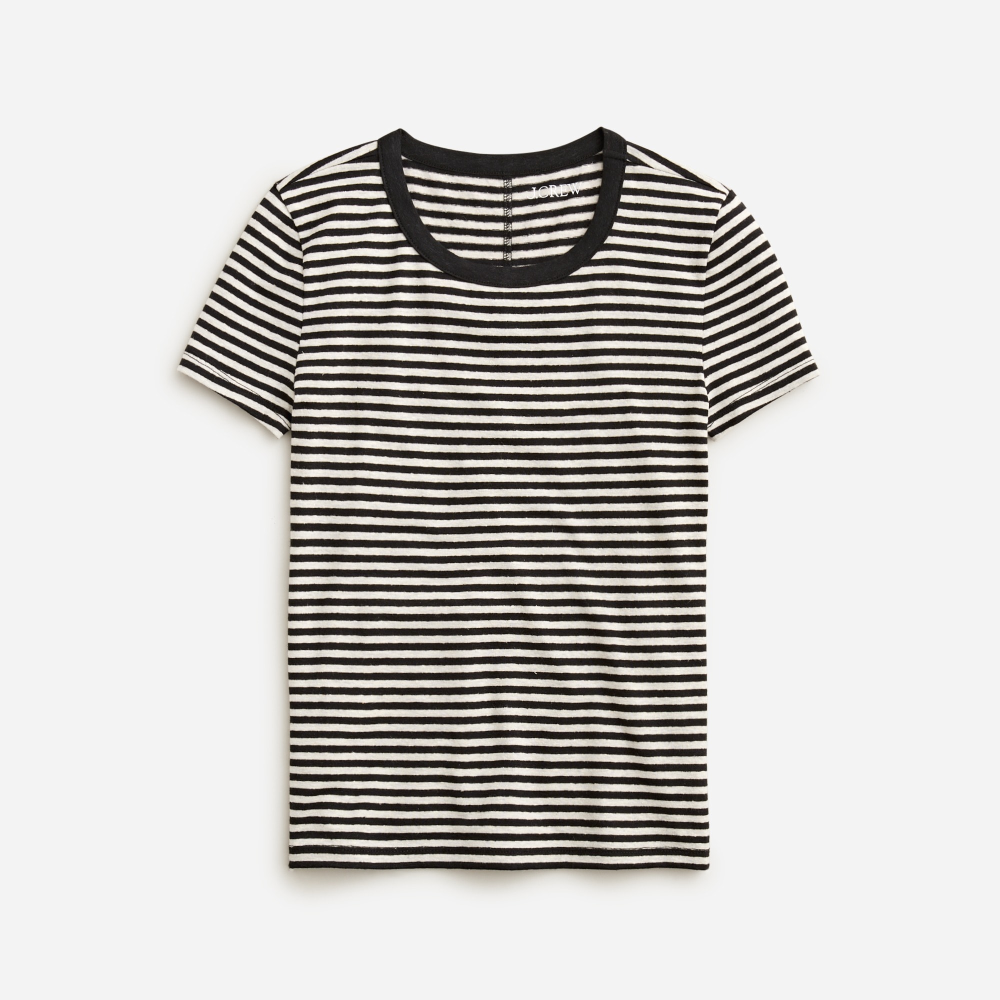 New in the linen collection: your ideal base layer. This lightweight tee comes with our signature stripes and is crafted from an easy-to-move-in stretch linen blend that keeps you cool and looks sharp all day long. Plus, it’s guaranteed to pair perfectly with everything in your closet.