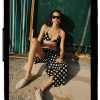 A classic string bikini top in a reversible print. This style comes with a cute dot print on one side and a classic stripe print on the other, so you can mix and match to your heart’s desire.
