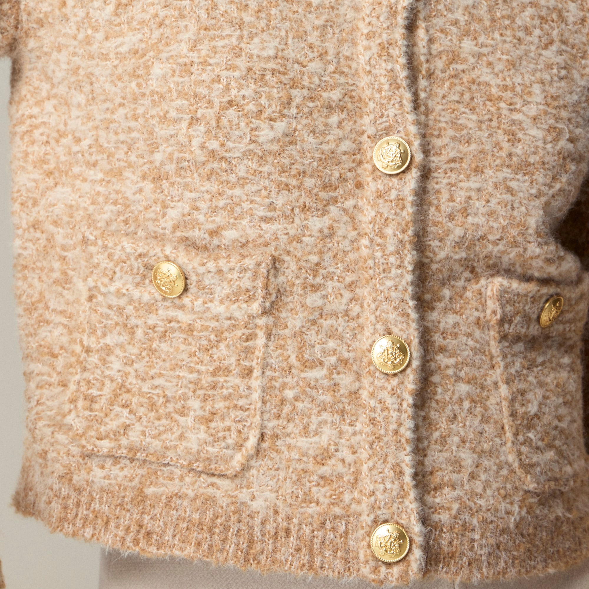 A classic, cozy silhouette, now with extra dimension. Knit from a soft wool blend with flecks of white and brown yarn, this lady jacket comes with all the signature details you know and love like our gold crest buttons and heritage-inspired patch pockets.