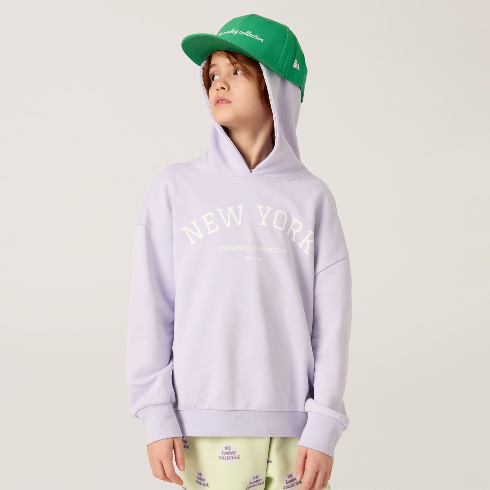 The Sunday Collective is a New York City-based premium childrenswear brand that believes in quality, timelessness and sustainability. Outfitting children ages 3-12, our clothes are designed with the intention for them to be passed from one child to the next for many Sundays to come. Inspired by the city that makes us tick! The organic cotton weekend hoodie features an oversized fit, essential for every little one’s wardrobe.