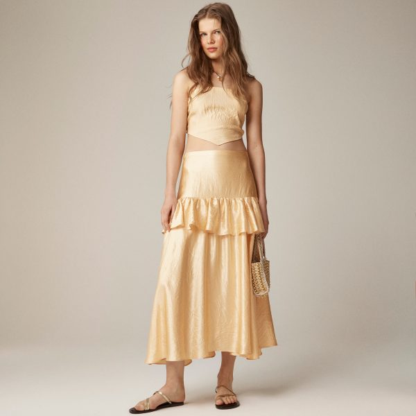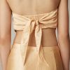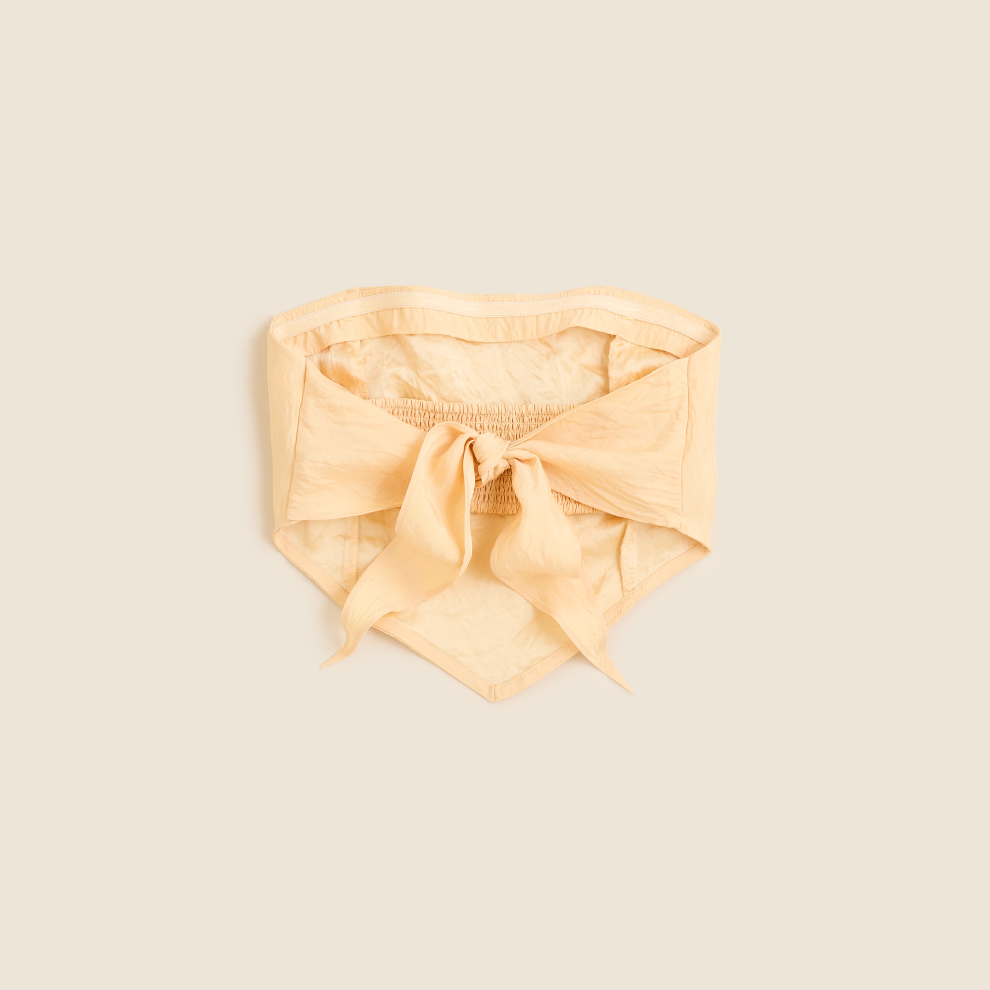 A top that ties your look together. This strapless style comes with hidden smocking for a secure fit and a statement back-tie detail. Plus, it’s crafted from our textured satin with a natural crinkle that makes it perfect for packing.