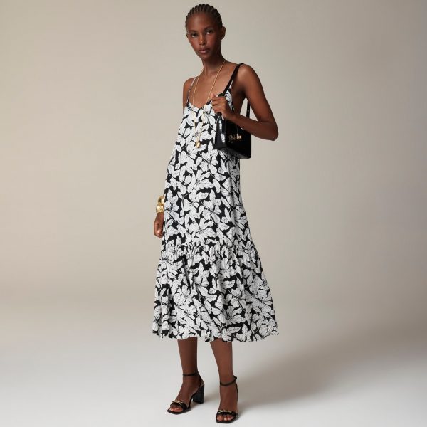 Tiered Drapey Viscose Twill Dress In Floral For Women
