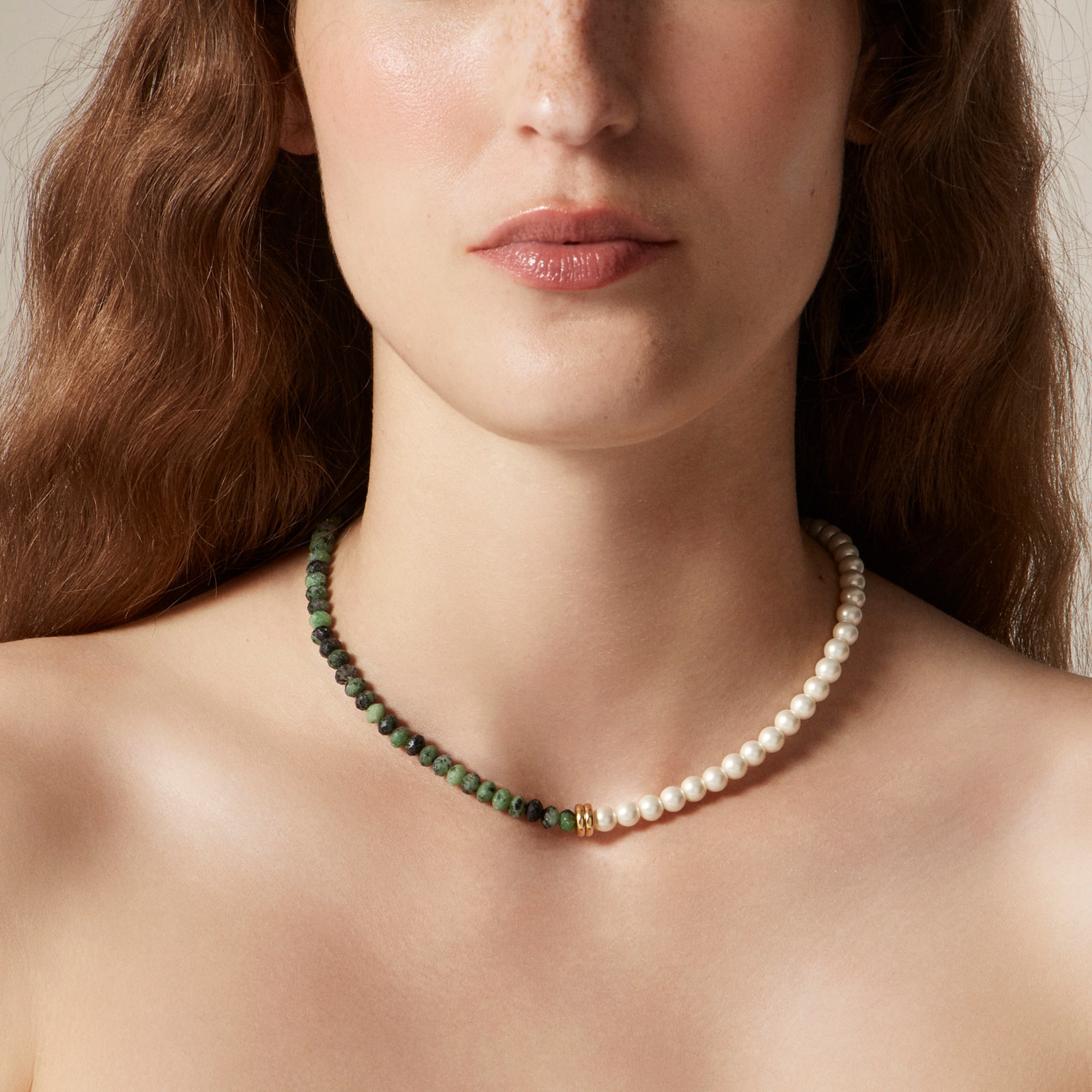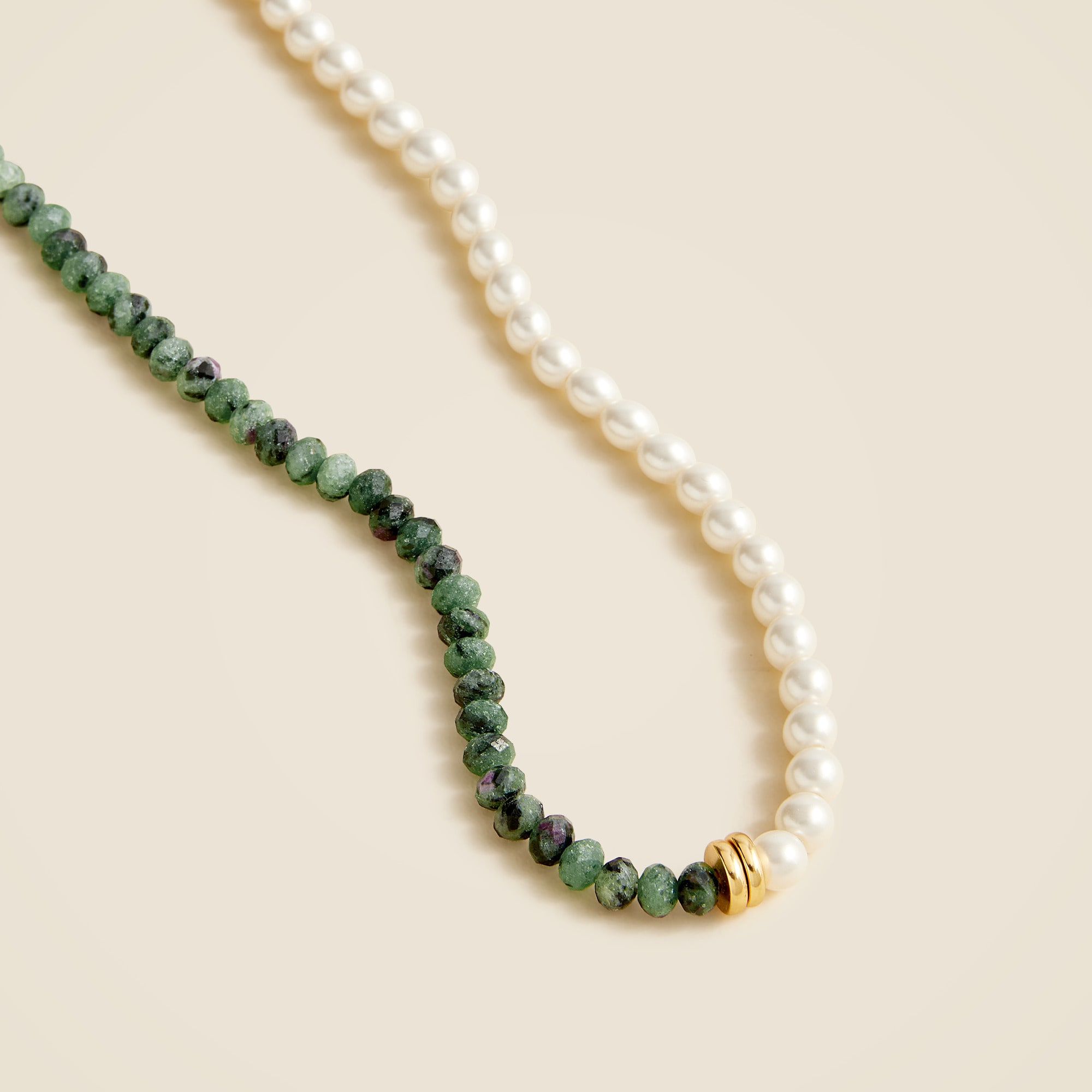 Equal parts colorful and classic. This layerable necklace comes with semiprecious stones on one side and pearls on the otheru0026mdash;which you can wear off-center for a cool asymmetrical look. Want to keep your jewelry looking like new? We recommend removing it before showering or exercise and putting it on after applying hair products or perfume. To clean your pieces, polish them with a soft, dry clothu0026mdash;and when not wearing, store them in a pouch or jewelry case.