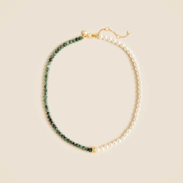 Equal parts colorful and classic. This layerable necklace comes with semiprecious stones on one side and pearls on the otheru0026mdash;which you can wear off-center for a cool asymmetrical look. Want to keep your jewelry looking like new? We recommend removing it before showering or exercise and putting it on after applying hair products or perfume. To clean your pieces, polish them with a soft, dry clothu0026mdash;and when not wearing, store them in a pouch or jewelry case.