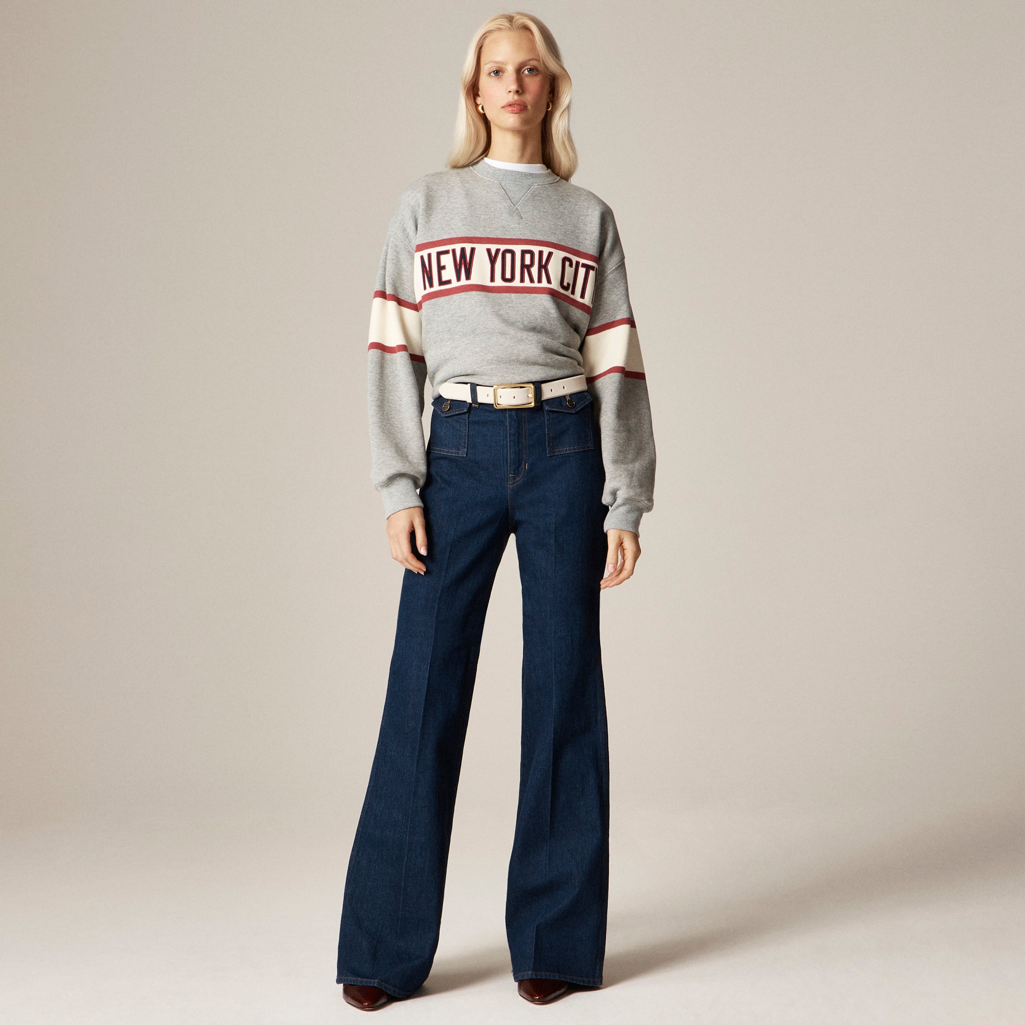 A timeless cut with a touch of retro charm. Designed to sit right on the waistline, this jean is slim through the hip and thigh and kicks out into a subtly dramatic flare. It comes with a leg-lengthening 32u0026quot; inseamu0026mdash;in other words, we recommend wearing these with your favorite pair of heels to avoid any dragging. Finished in soft cotton denim with just a touch of stretch, they’re the ideal pair for effortless day-to-night dressing.