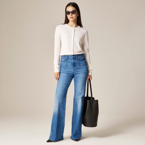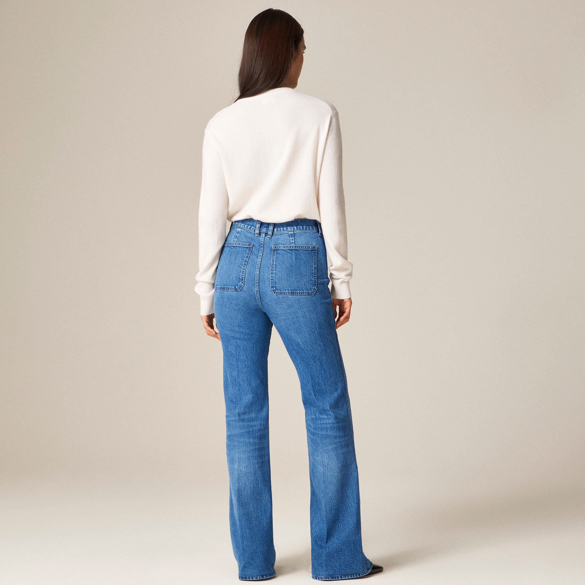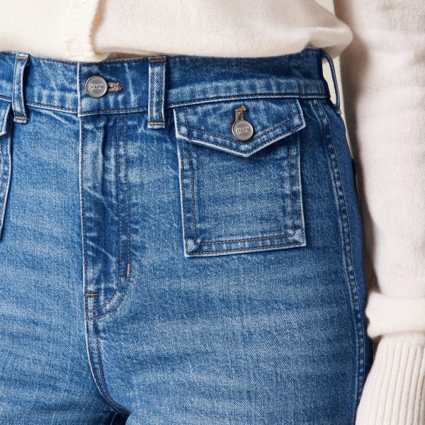 A timeless cut with a touch of retro charm. Slim through the hip and thigh, these high-rise jeans kick out into a subtly dramatic flare. They come with flap pockets for some vintage charm, plus a leg-lengthening 32u0026quot; inseamu0026mdash;in other words, we recommend wearing these with your favorite pair of heels to avoid any dragging. Finished in soft cotton denim with just a touch of stretch, they’re the ideal pair for effortless day-to-night dressing.