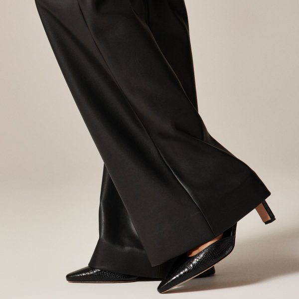 A timeless cut in a sleek new fabric for fall. Designed to sit right on the waistline, it’s slim through the hip and thigh and kicks out into a subtly dramatic flare. It comes with a leg-lengthening 32u0026quot; inseamu0026mdash;in other words, we recommend wearing these with your favorite pair of heels to avoid any dragging. The finishing touch? We cast it in smooth, sleek faux leather for added polish and a hint of edge.