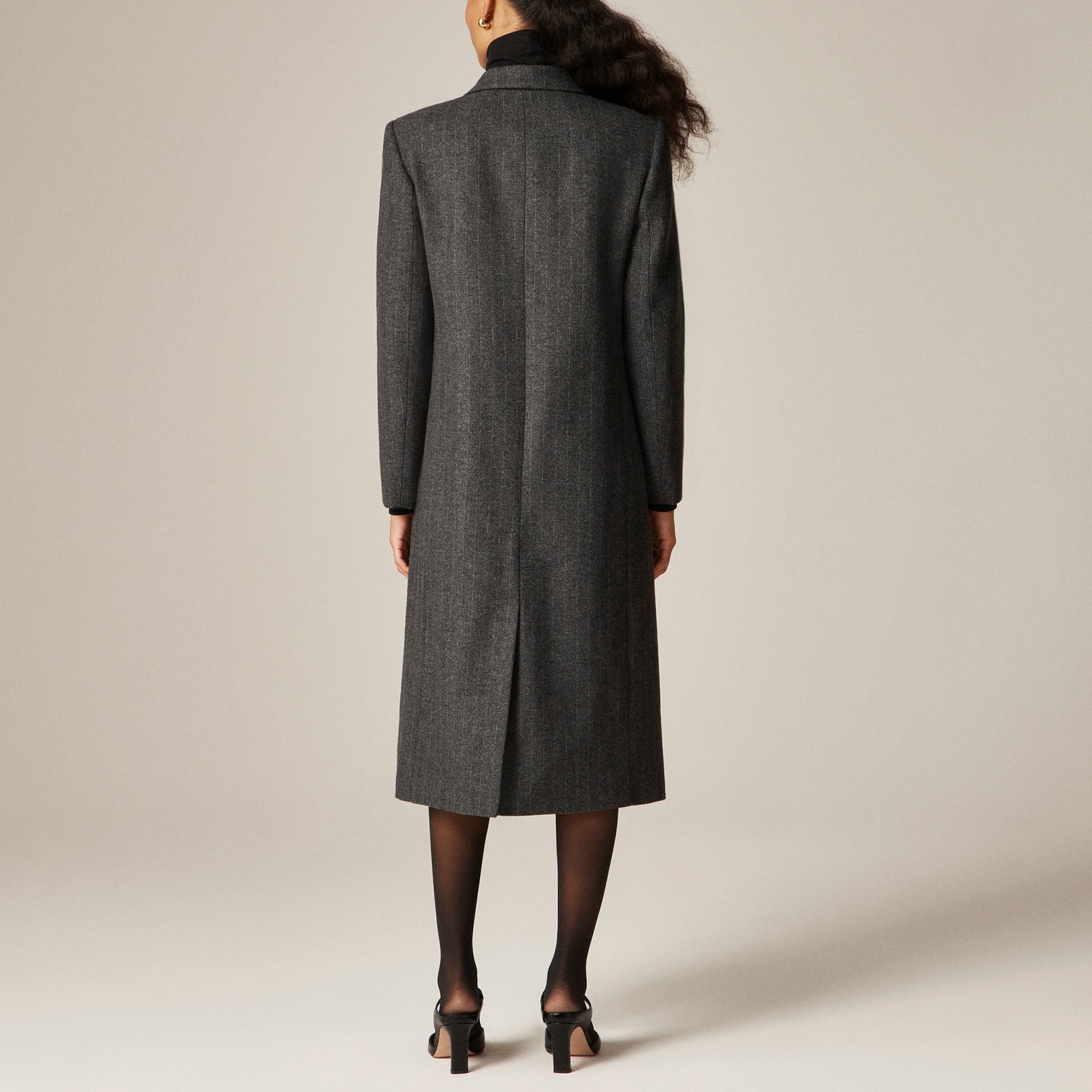 Tailoring, taken to new lengths. This streamlined topcoat nods to classic menswear with sharp lapels, a straight cut and button-front closure, and made a touch more feminine with carefully placed darts down the front. Equal parts polished and practical, it’s crafted from a cozy wool blend in a pinstripe pattern from Italian mill Nova Fides, renowned for their durable, premium-quality materials and rich history.